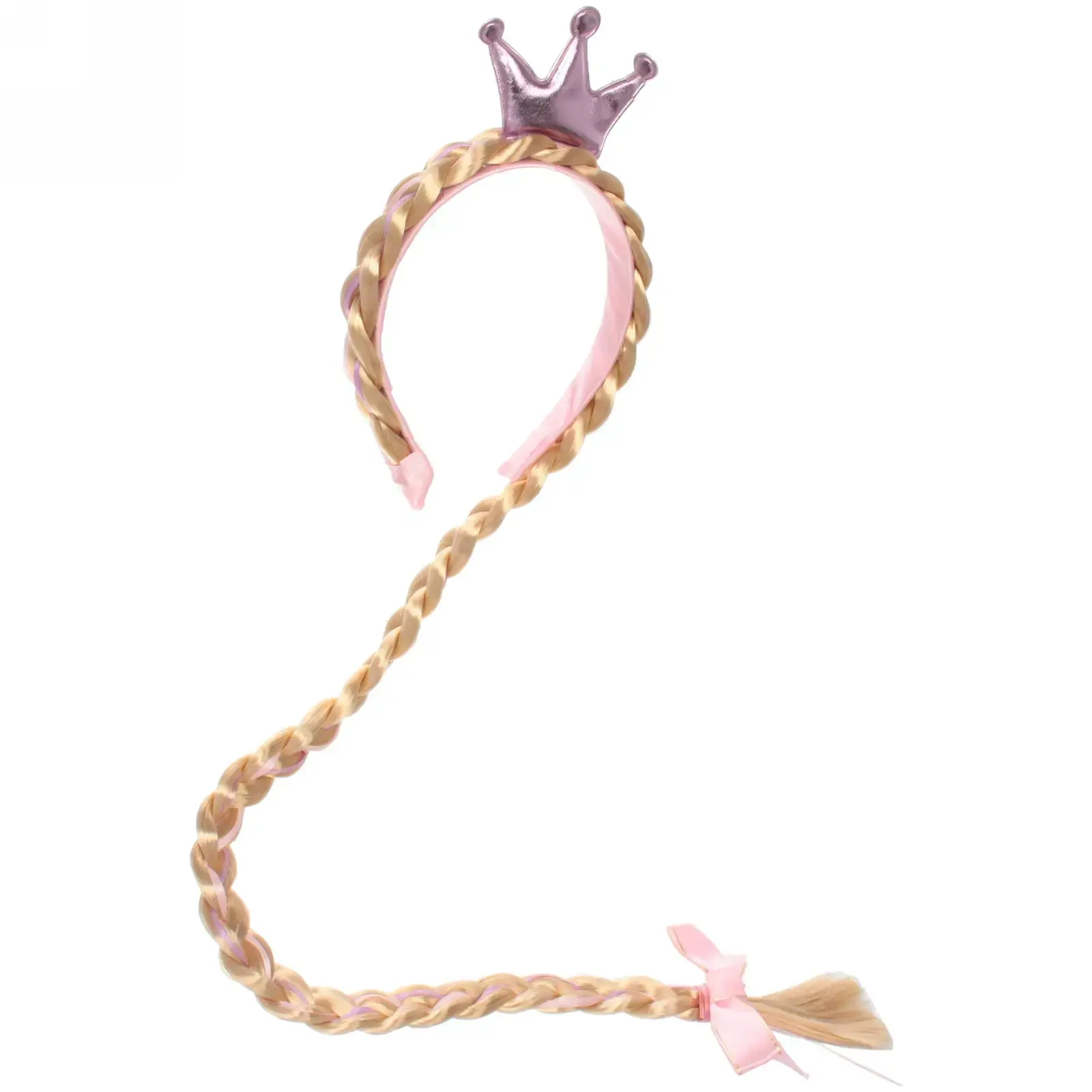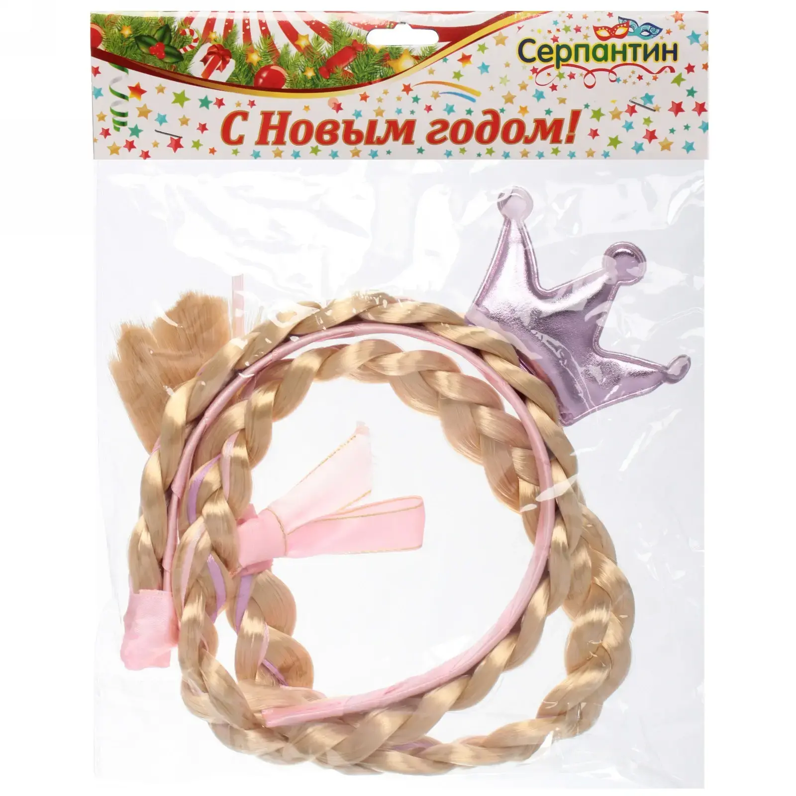Ободок карнавальный с косичкой 'Принцесса', розовый/золотой, пластик/текстиль