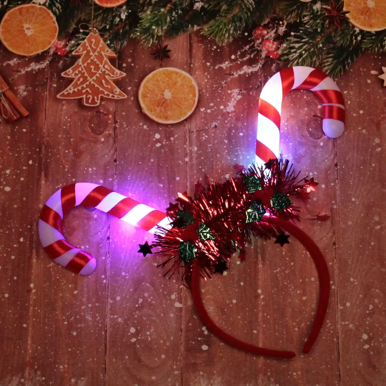 Ободок карнавальный с подсветкой «Леденцы» — это идеальный аксессуар для новогодних праздников, который добавит ярких красок и веселья в ваш образ. Он выполнен в красном цвете и украшен элементами, напоминающими рождественские конфеты, что делает его незаменимым для создания праздничного настроения.