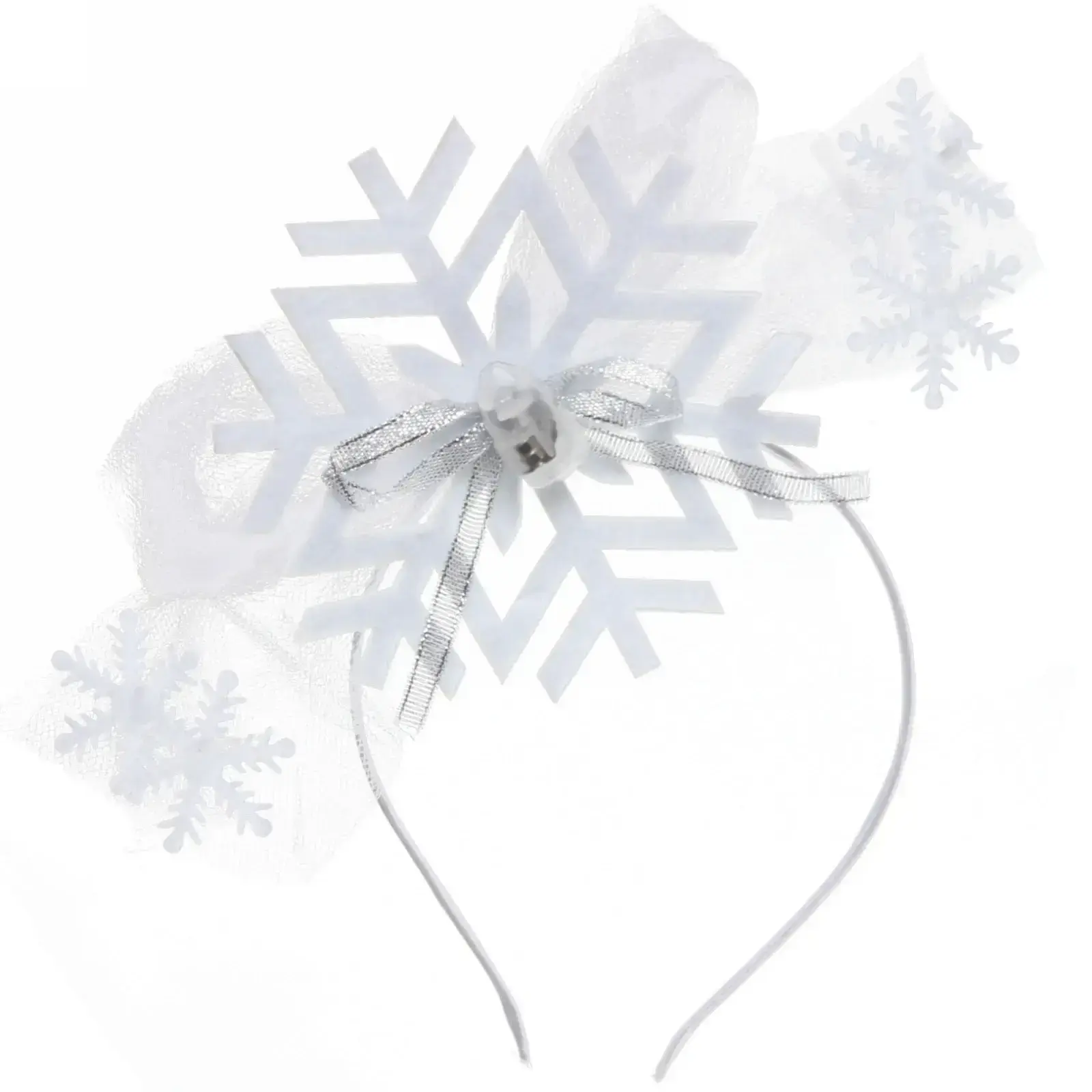 Ободок карнавальный с подсветкой «Сказочная снежинка», белый, серебристый, ПВХ и пластик, для новогодних костюмов
