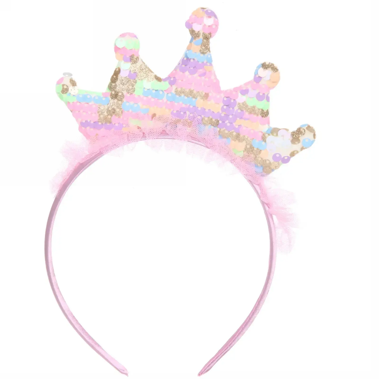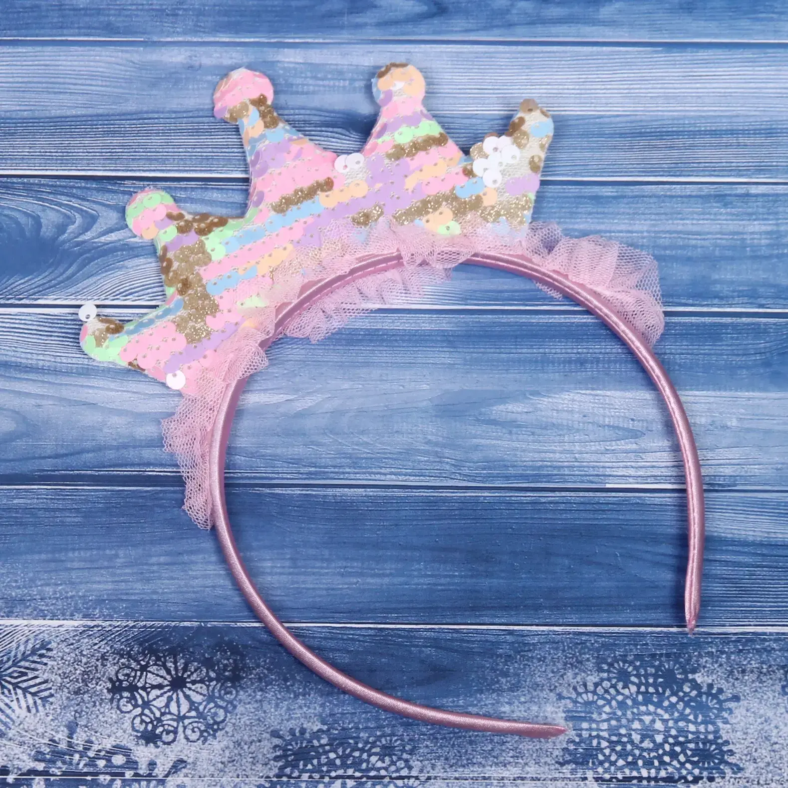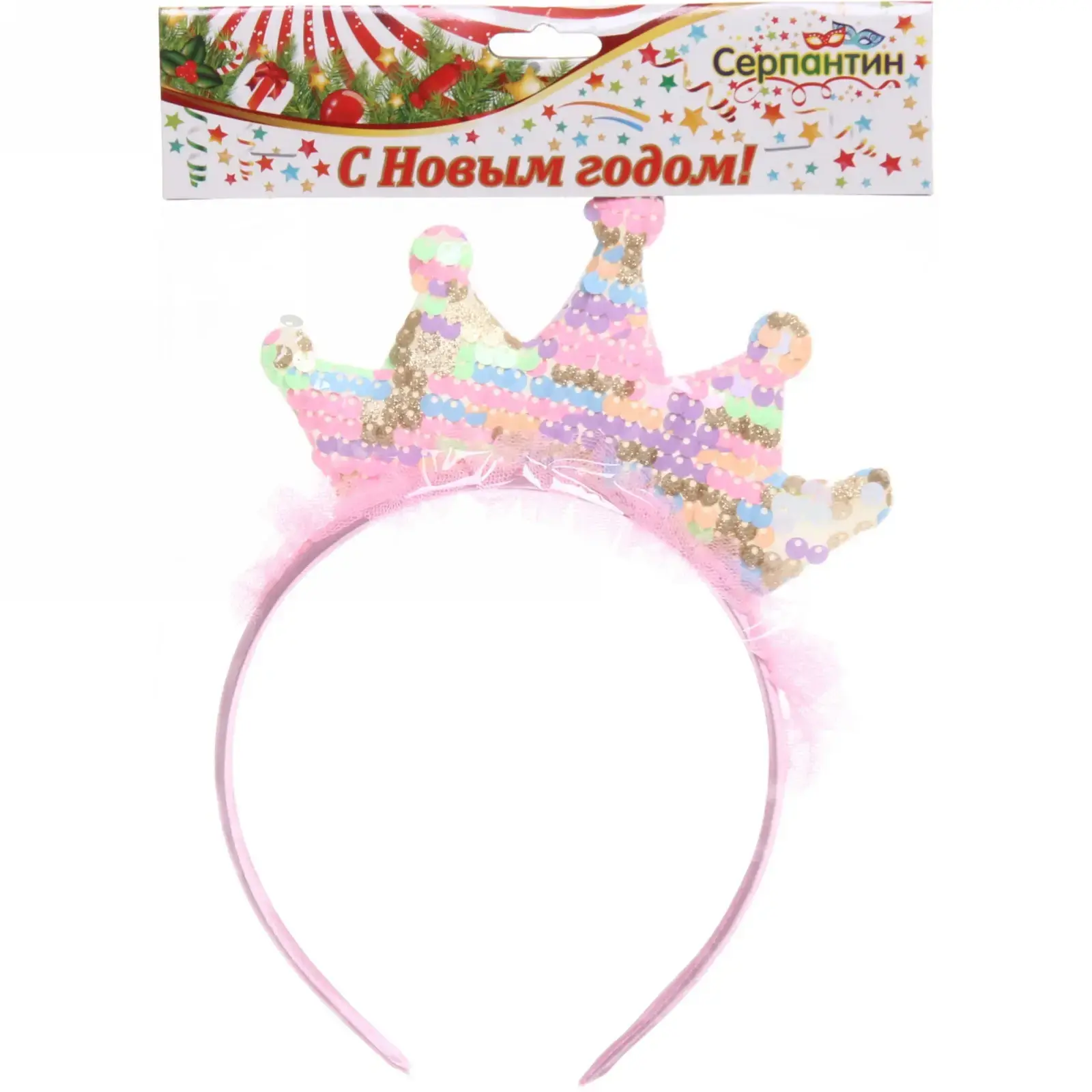 Ободок имеет стандартный объем, что делает его универсальным для большинства детей. Корона украшена цветными пайетками и блестками, что придает ей праздничный вид. Размеры короны не указаны, но она предназначена для ношения на голове, что делает ее идеальным выбором для создания карнавального образа.