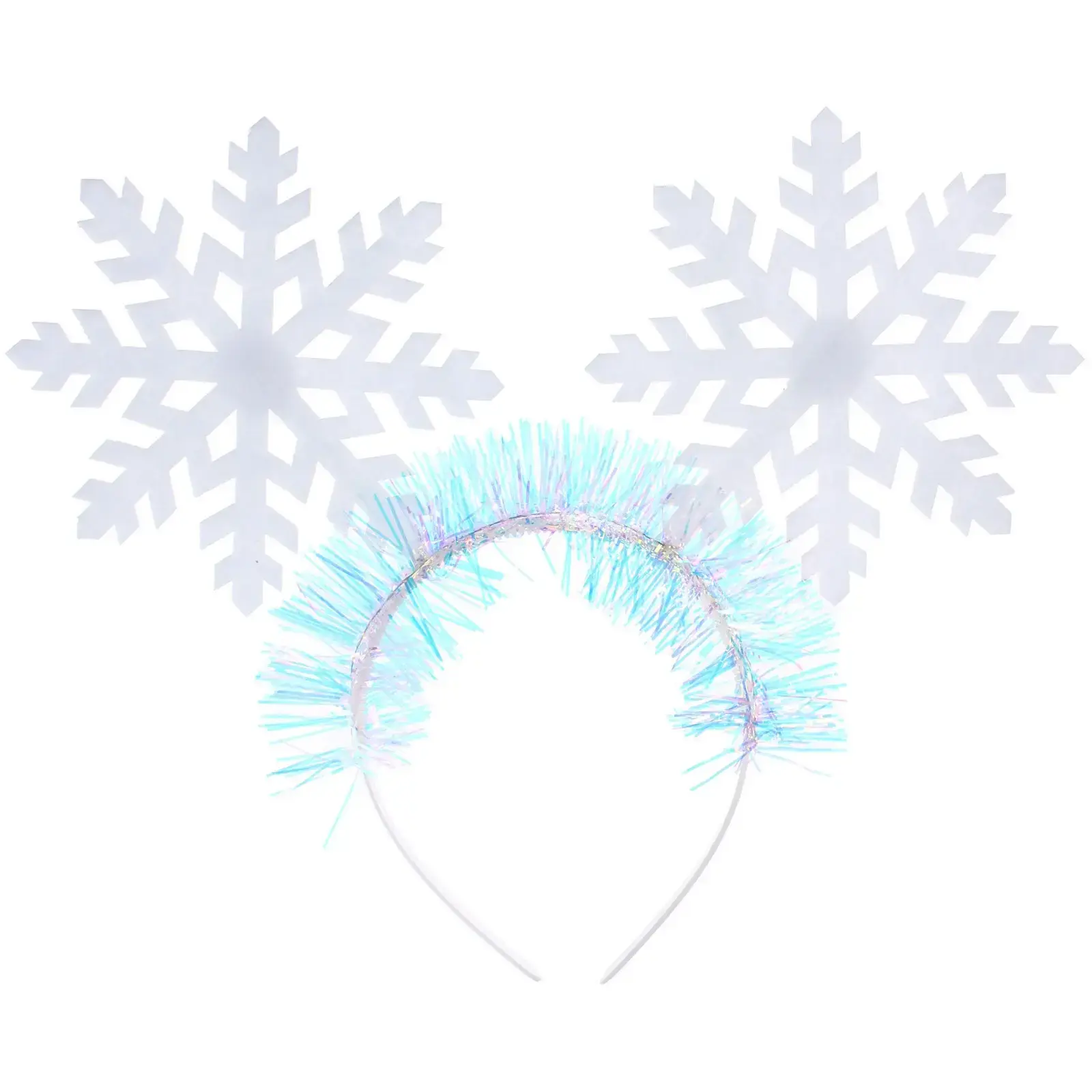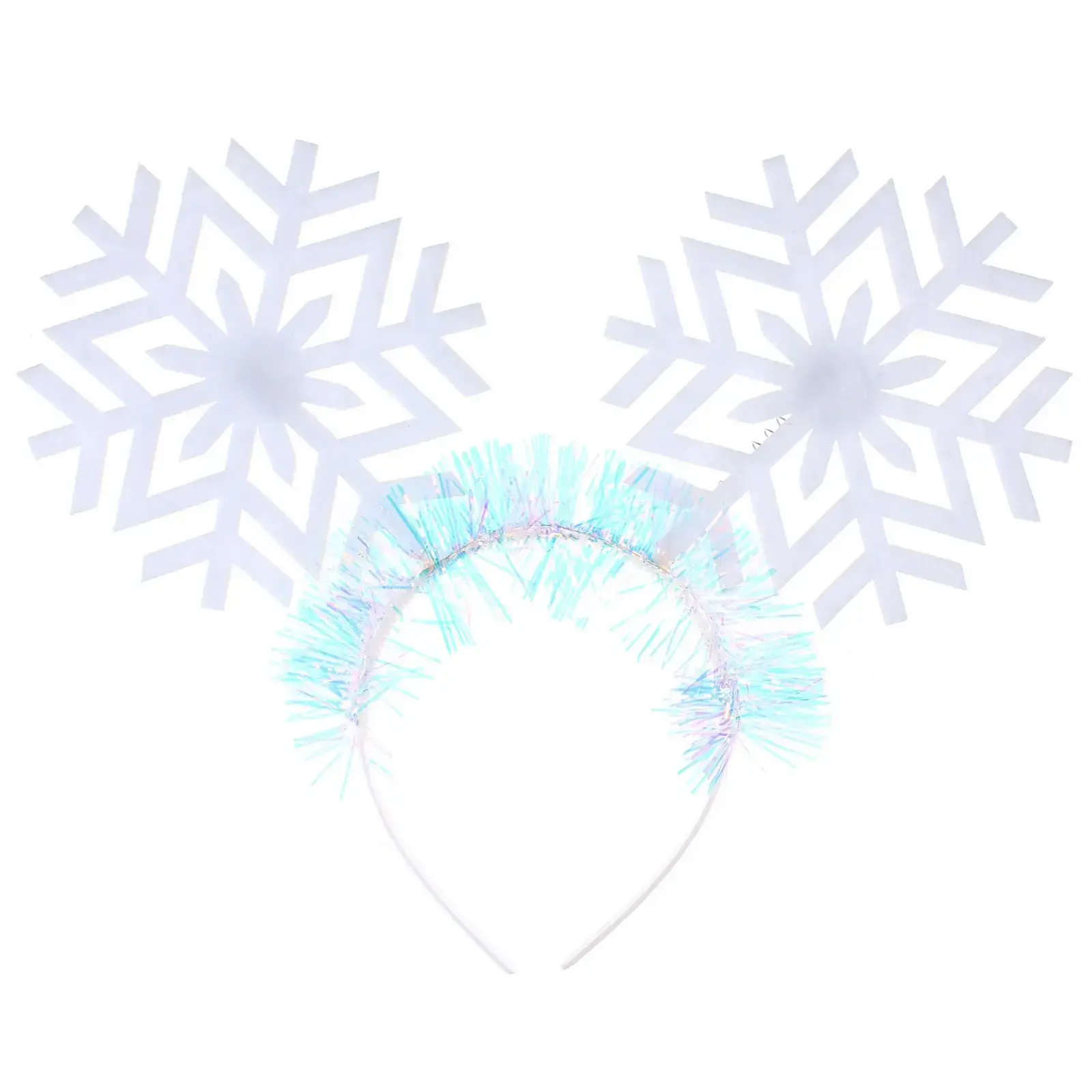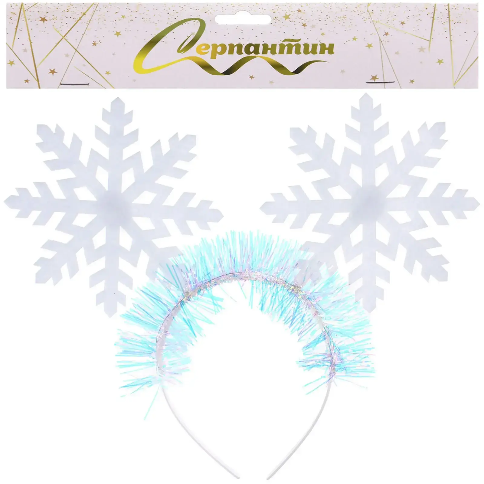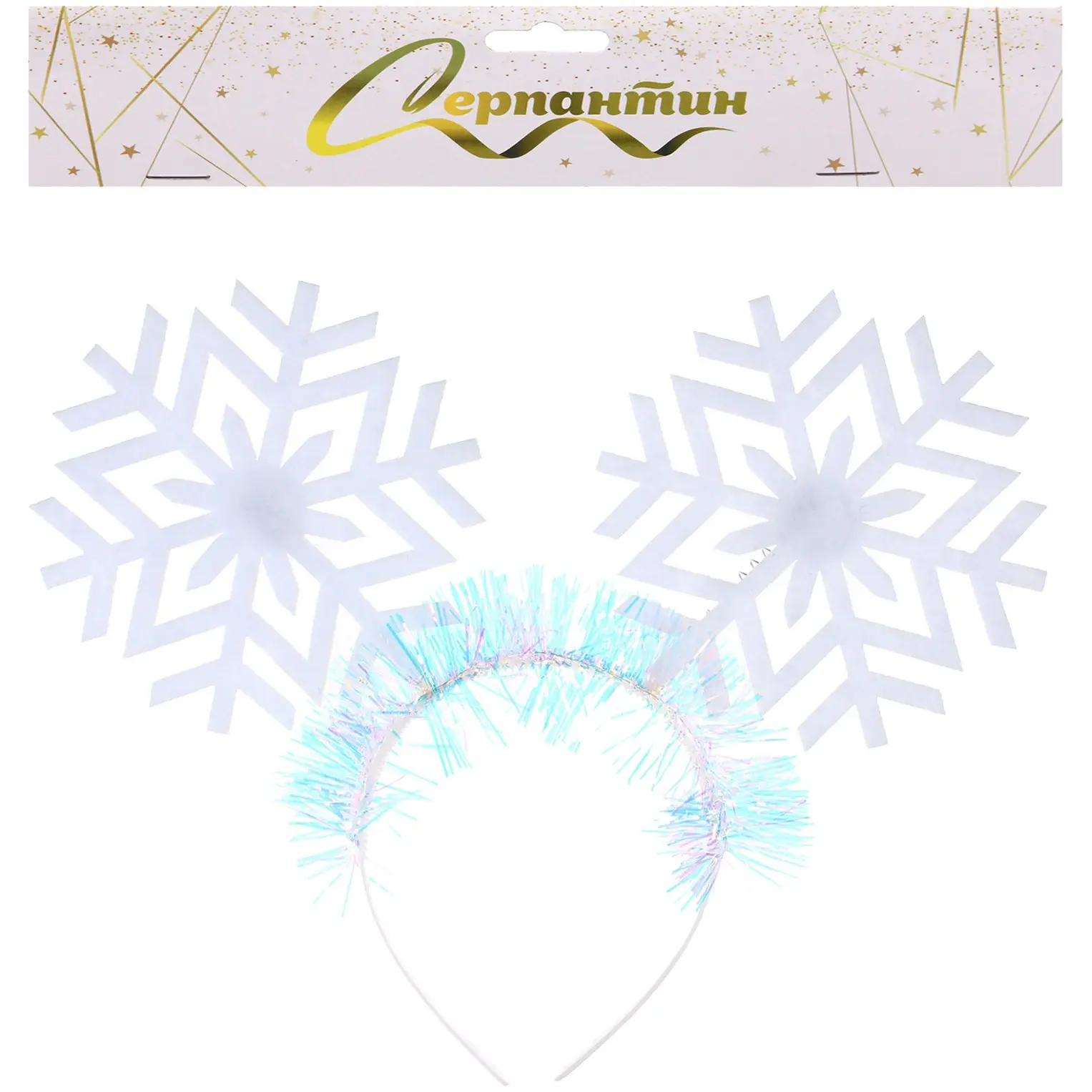 Ободок имеет гладкую форму и округлый дизайн, что обеспечивает комфорт при ношении. Декоративные элементы, такие как снежинки, выполнены из легкого материала и имеют симметричный узор, что добавляет изысканности. Размеры ободка не указаны, но он стандартный и подходит для большинства людей. Праздничный стиль аксессуара делает его идеальным выбором для зимних праздников, таких как Новый год или Рождество.