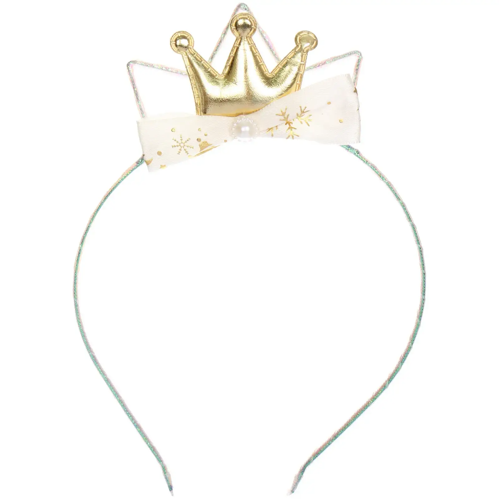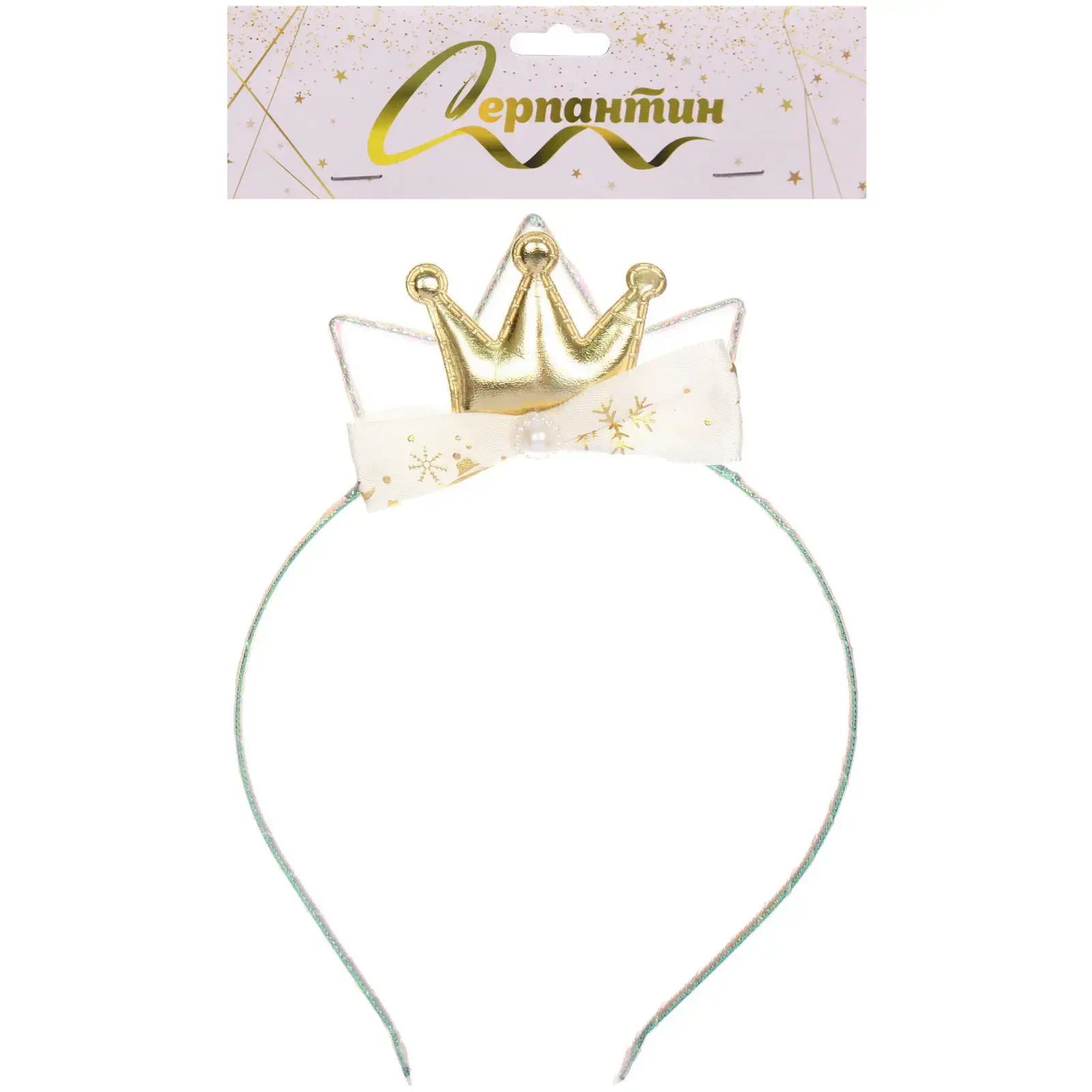 Ободок имеет размер 18 см, что делает его идеальным для детей. Золотой цвет и блестящая текстура придают ему праздничный вид, а белый бантик с золотыми узорами добавляет изящества. Этот аксессуар станет неотъемлемой частью любого детского праздника, создавая атмосферу радости и веселья.