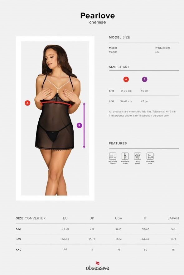 Эротичная сорочка с изысканным дизайном создана для тех, кто ценит эстетику близости и комфорт. Полупрозрачная сетка в сочетании с ажурным кружевом подчеркивает женственность, а мерцающие жемчужины на декольте добавляют ноту роскоши.