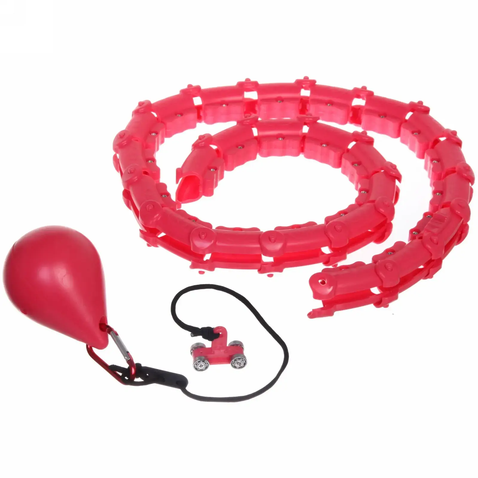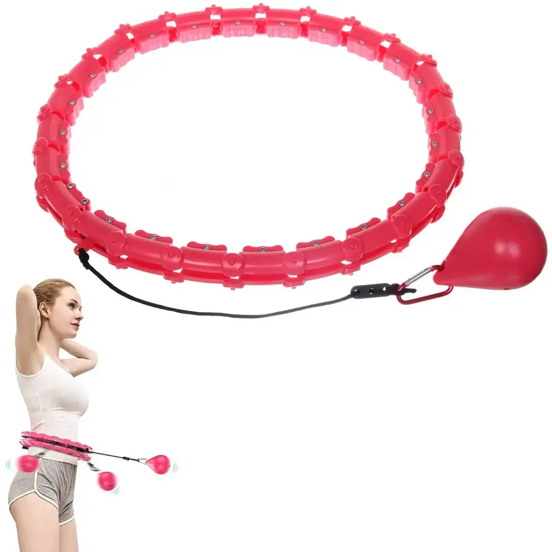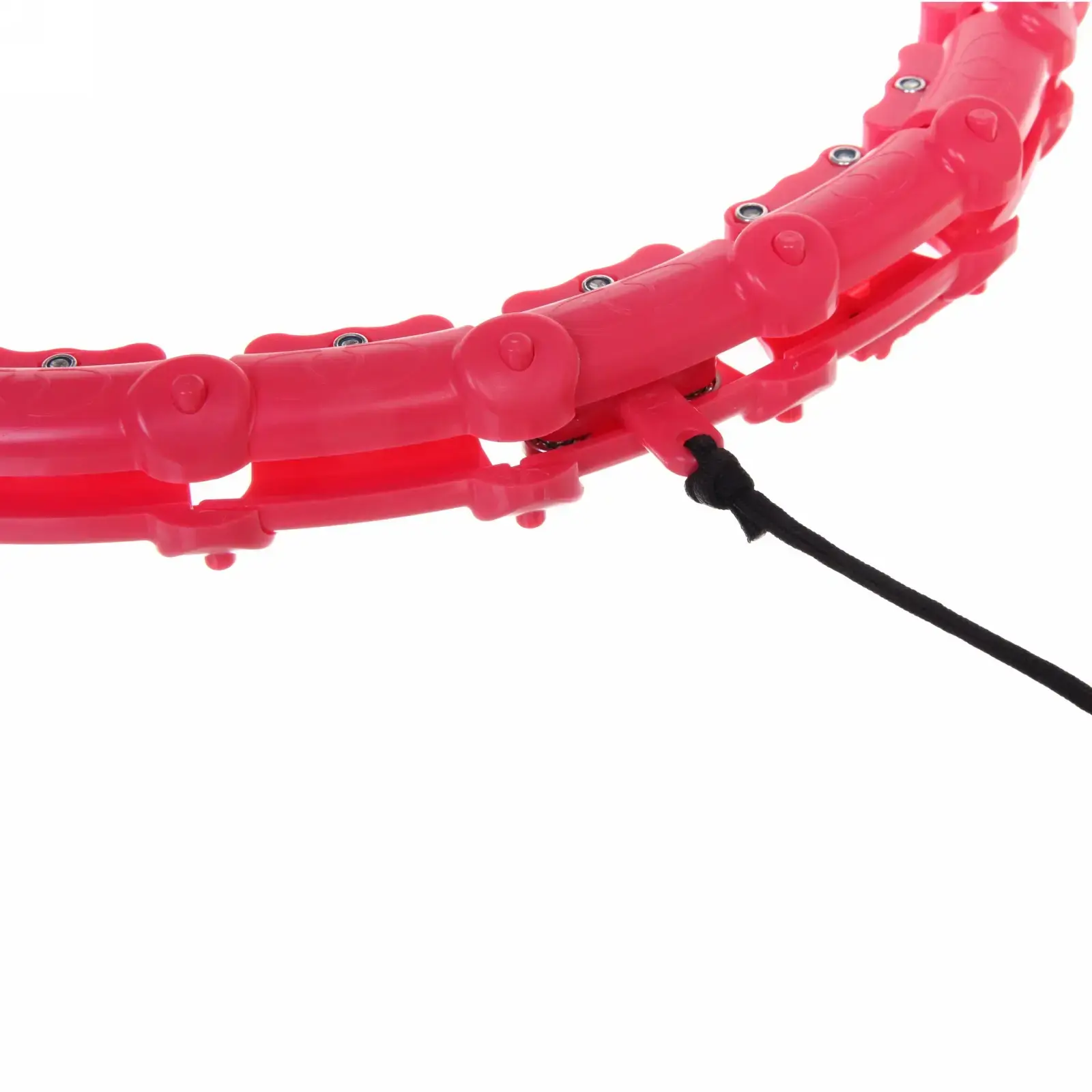 Обруч изготовлен из прочного пластика с металлическими элементами утяжеления. Розовый цвет добавляет эстетики вашим тренировкам. Благодаря гибкой системе крепления, его можно легко собрать и разобрать при необходимости.