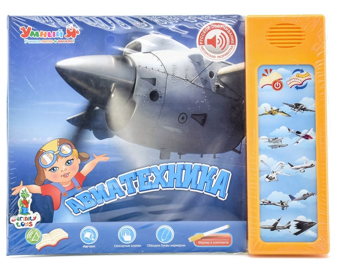 Обучающая книга для малышей "Авиатехника": учим буквы и слова, звуковые эффекты, маркер в комплекте