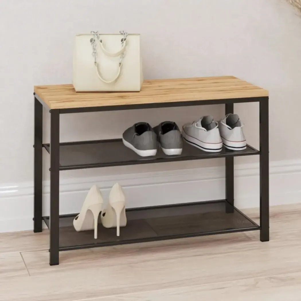 Обувница «ТОРОНТО» 2-уровневая, металл/дерево, 67х45х30см, черный, для прихожей