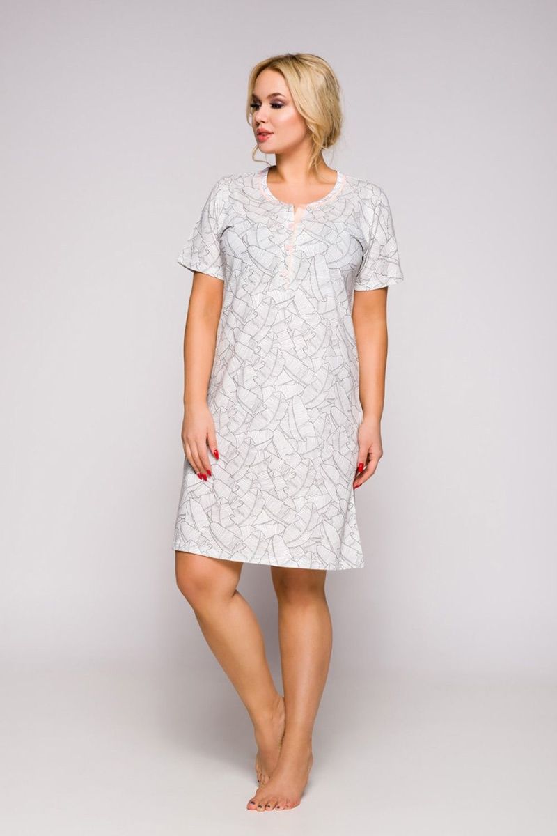 Сорочка выполнена из качественного хлопкового полотна, которое сохраняет свои свойства после множества стирок. Для поддержания идеального вида изделия рекомендуется стирка при щадящем режиме согласно инструкции на ярлыке. Цвет: светло-серый с принтом. Размер: XXXL.