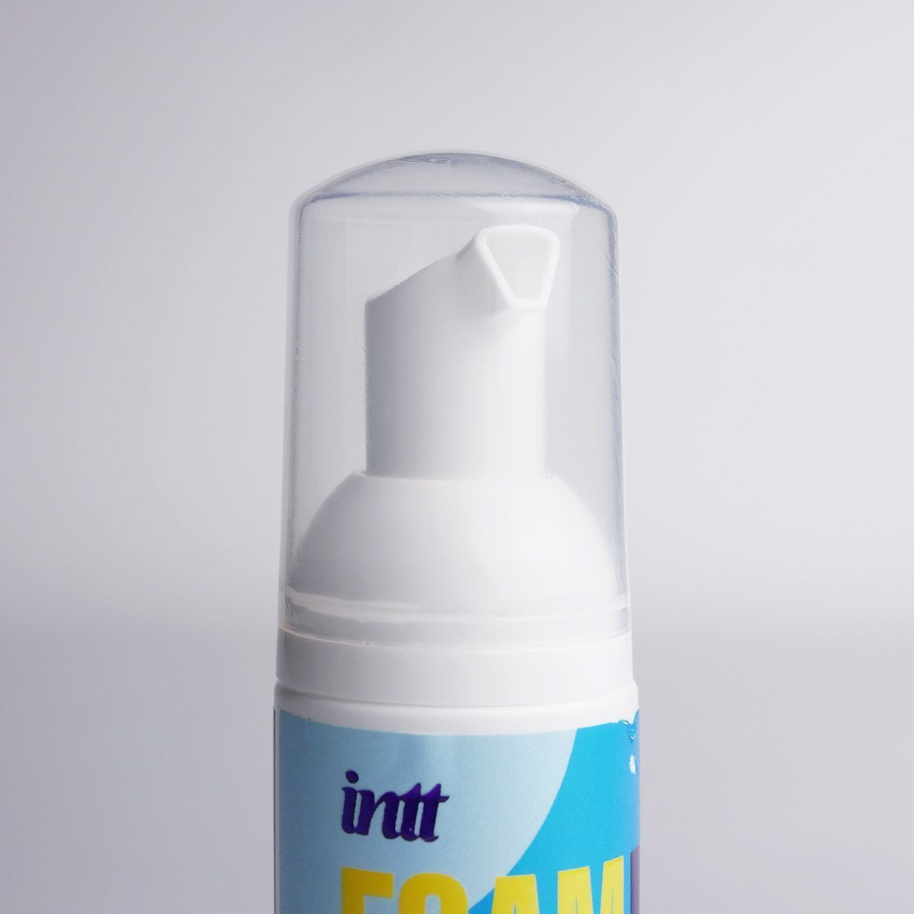 Пенка поставляется во флаконе объемом 50 мл с удобным дозатором. Голубой градиент упаковки подчеркивает современный подход к интимному уходу. Произведено в Португалии компанией INTT – экспертом в создании средств для взрослых.