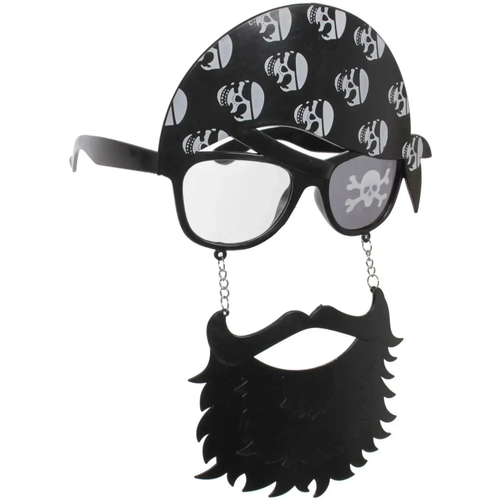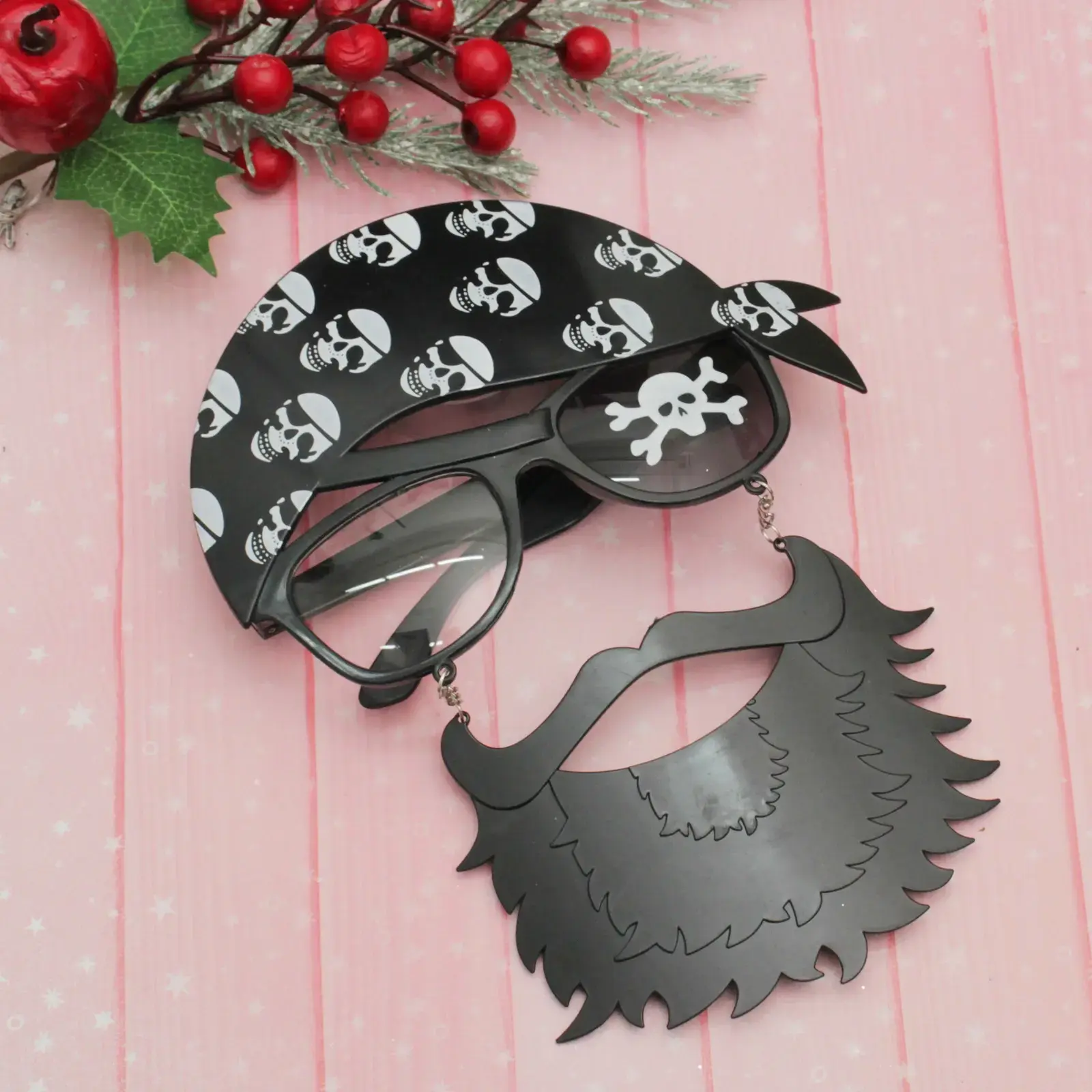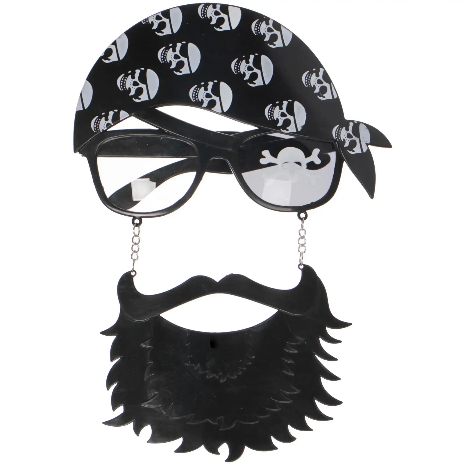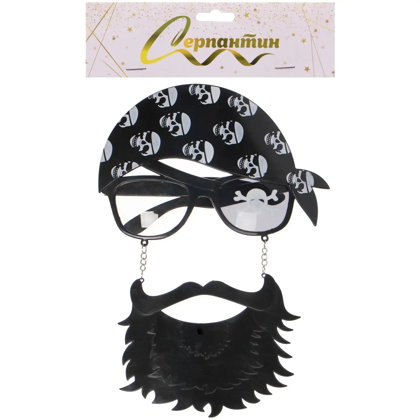 Эти очки выделяются своим уникальным дизайном, который сочетает в себе элементы пиратской тематики. Черные линзы с изображением черепа и костей, а также бандана с белыми черепами создают эффектный и комичный образ. Борода, выполненная из мягкого материала, добавляет дополнительный элемент веселья и оригинальности. Все элементы соединены между собой цепочкой, что обеспечивает надежность и удобство в использовании.