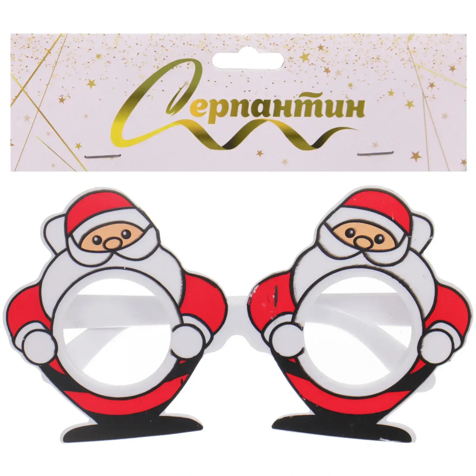 Размер очков составляет 14,5х8 см, что делает их подходящими для большинства людей. Белая пластиковая рамка с красными и черными элементами создает яркий контраст, а изображения Санта-Клауса по бокам добавляют игривости. Эти очки станут отличным подарком для друзей и близких, которые любят праздновать Новый год с размахом.
