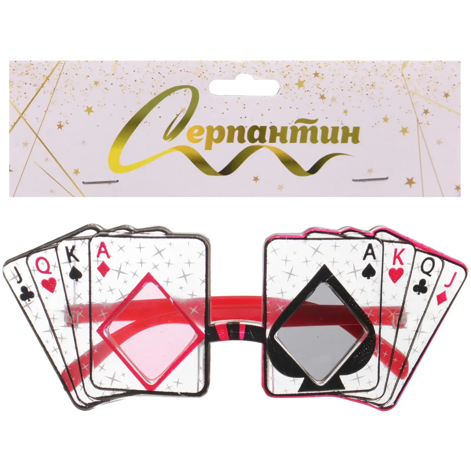 Очки карнавальные «Игра» имеют уникальный дизайн, оформленный в виде игральных карт, что делает их отличным выбором для вечеринок с игровой тематикой. Они легко надеваются и подходят для большинства людей благодаря своей универсальной форме. Эти очки станут отличным дополнением к вашему костюму или просто ярким акцентом в вашем образе.
