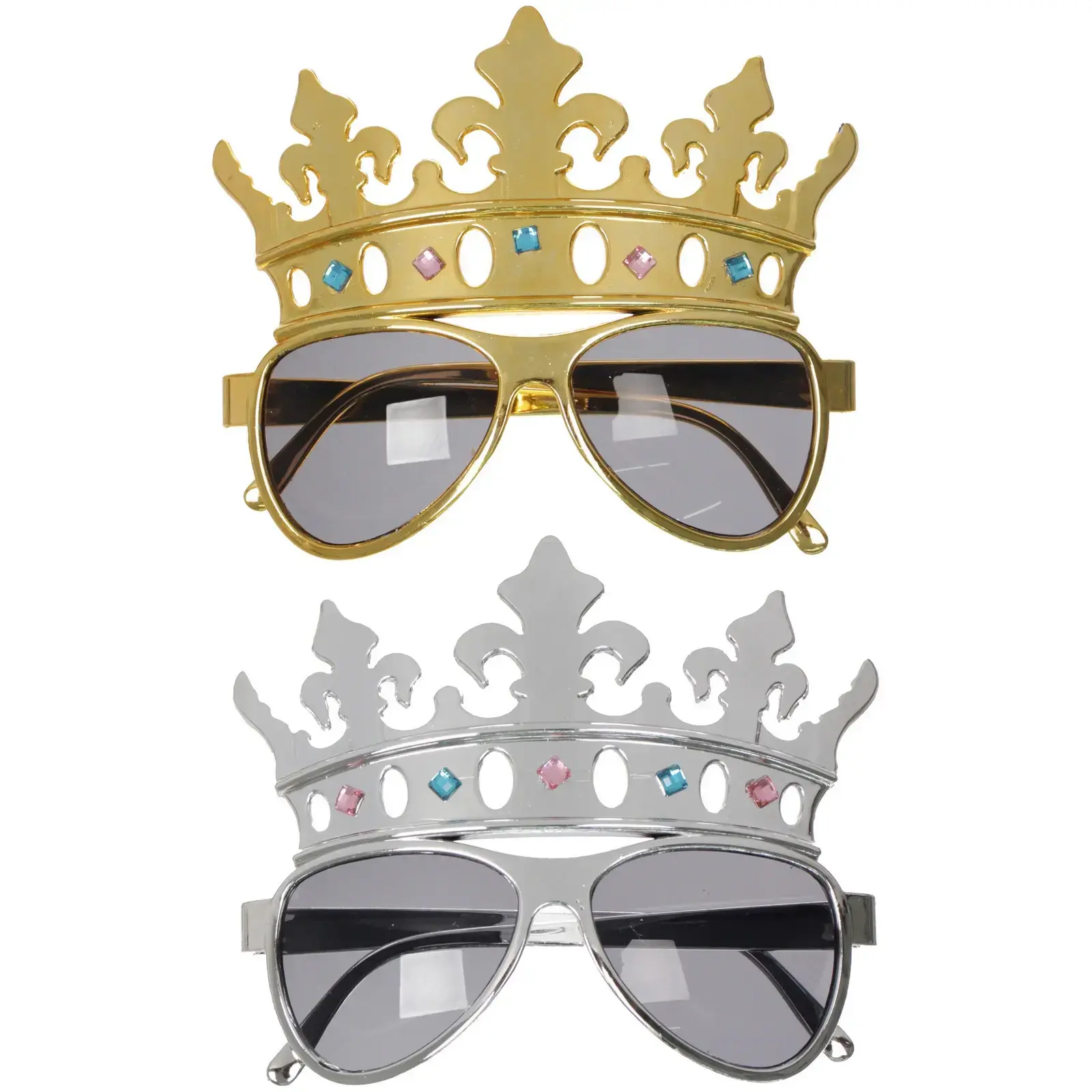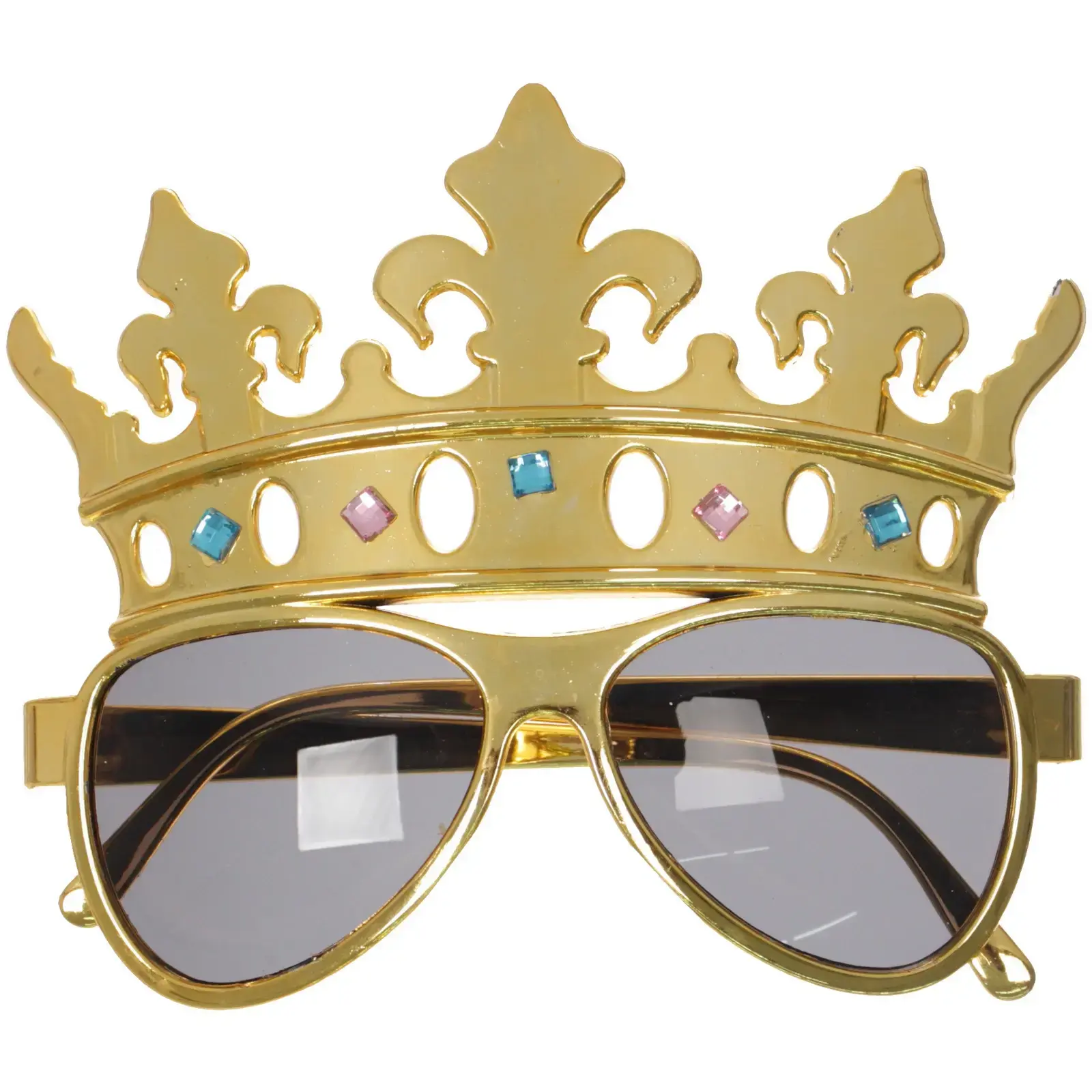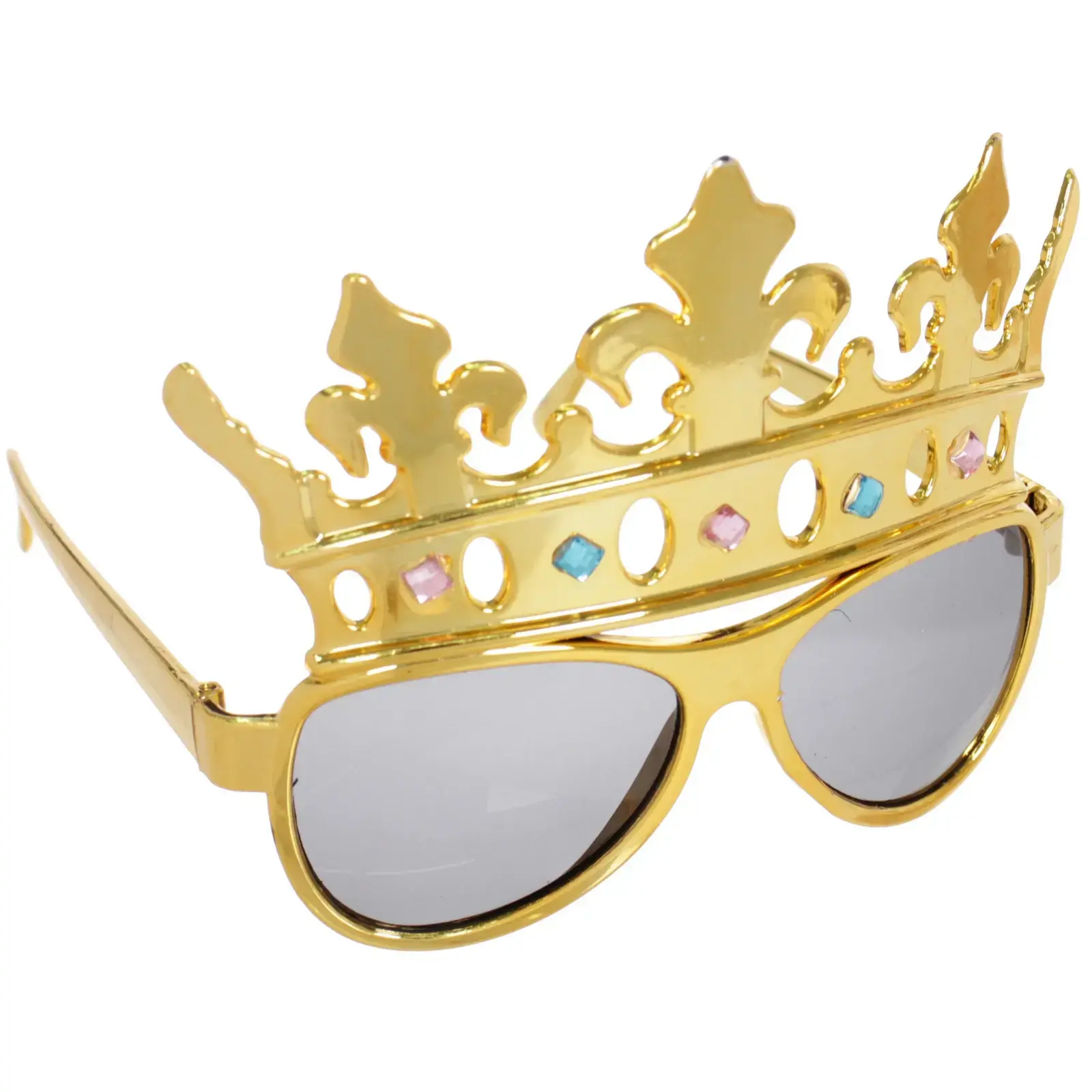 Очки имеют затемненные линзы, что обеспечивает защиту от солнечных лучей, а также добавляет загадочности вашему образу. Корона, оформленная с использованием цветных камней, придаёт очкам особый шарм. Эти очки — отличный выбор для создания незабываемого образа на любом празднике!