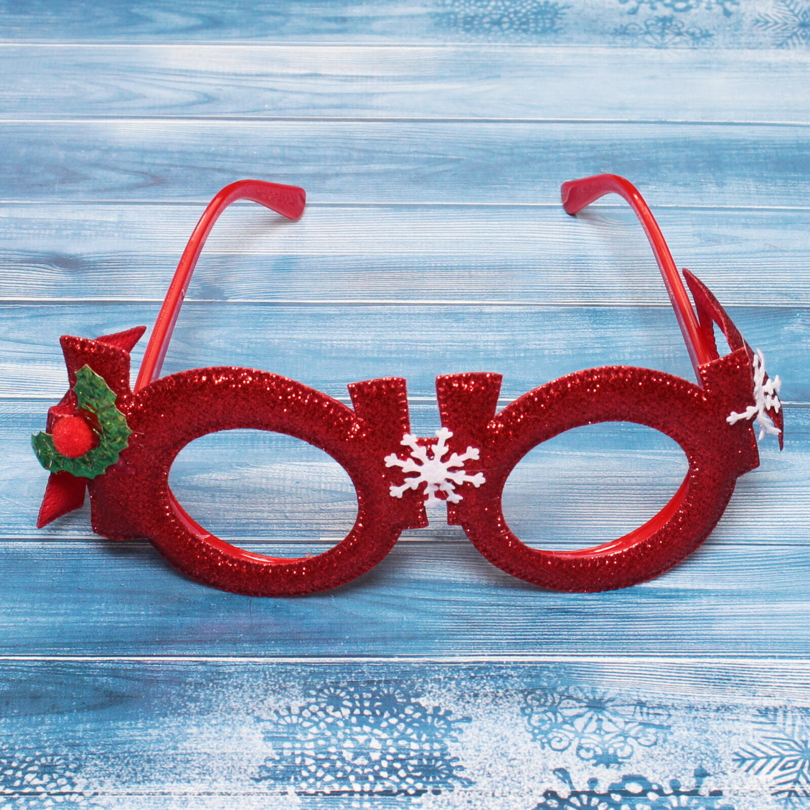 Почему стоит выбрать именно эти очки? Во-первых, их яркий цвет и блестящий декор привлекут внимание и создадут праздничное настроение. Во-вторых, они выполнены из качественных материалов: пластика и текстиля, что обеспечивает долговечность и комфорт при ношении. Очки украшены элементами в виде снежинок и зелёных веточек с ягодами, что добавляет им оригинальности и стиля.
