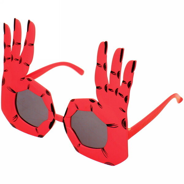 Очки карнавальные 'ОК!', пластик, красный, с элементами рук, темные линзы