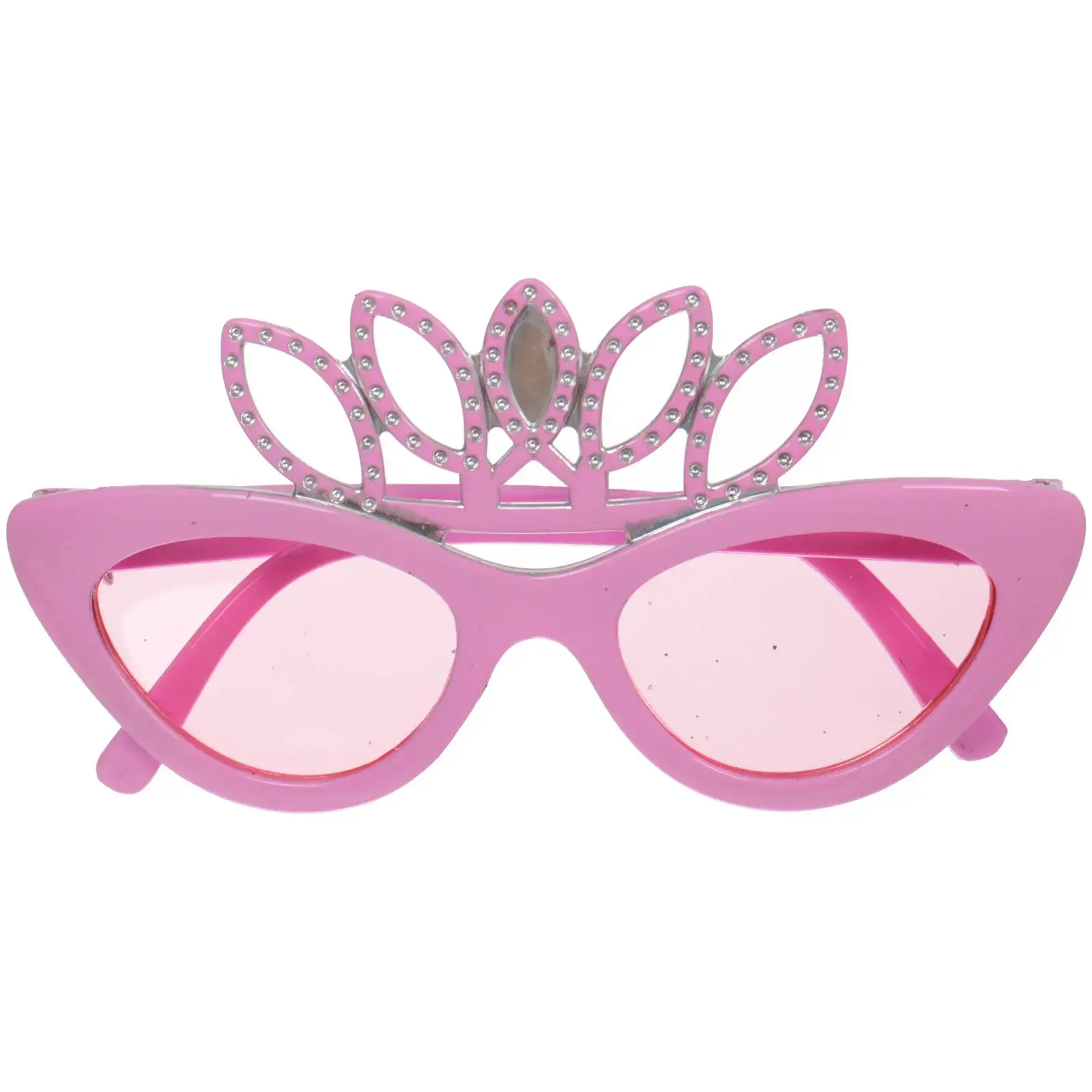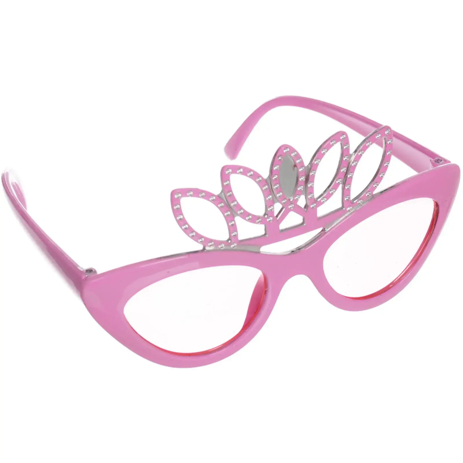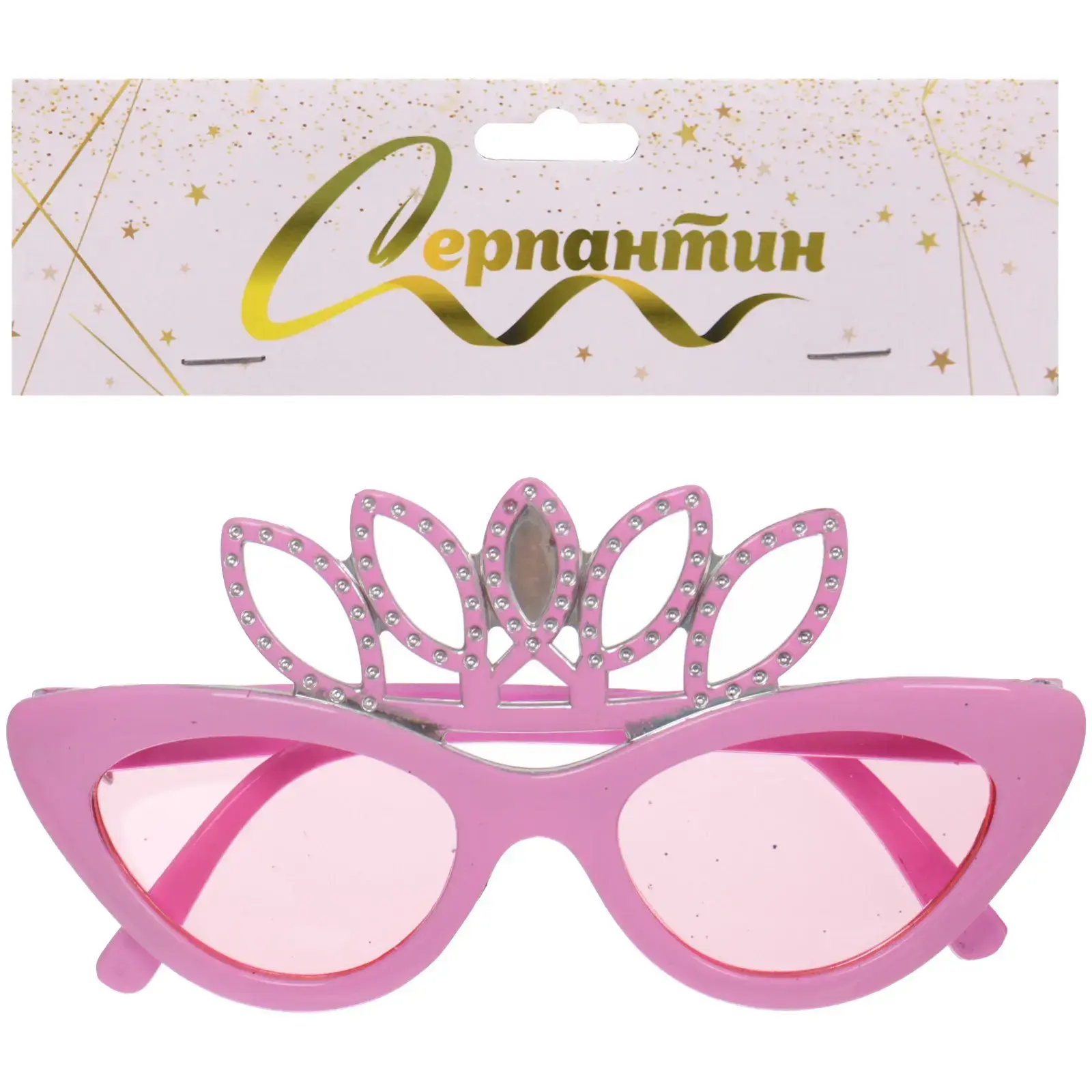 Очки имеют уникальный дизайн в стиле «кошачий глаз» с ярко-розовой оправой и декоративной короной, украшенной стразами. Они легкие и удобные, что делает их идеальными для длительного ношения. Эти очки подойдут как для детей, так и для взрослых, добавляя игривый элемент в любой костюм.
