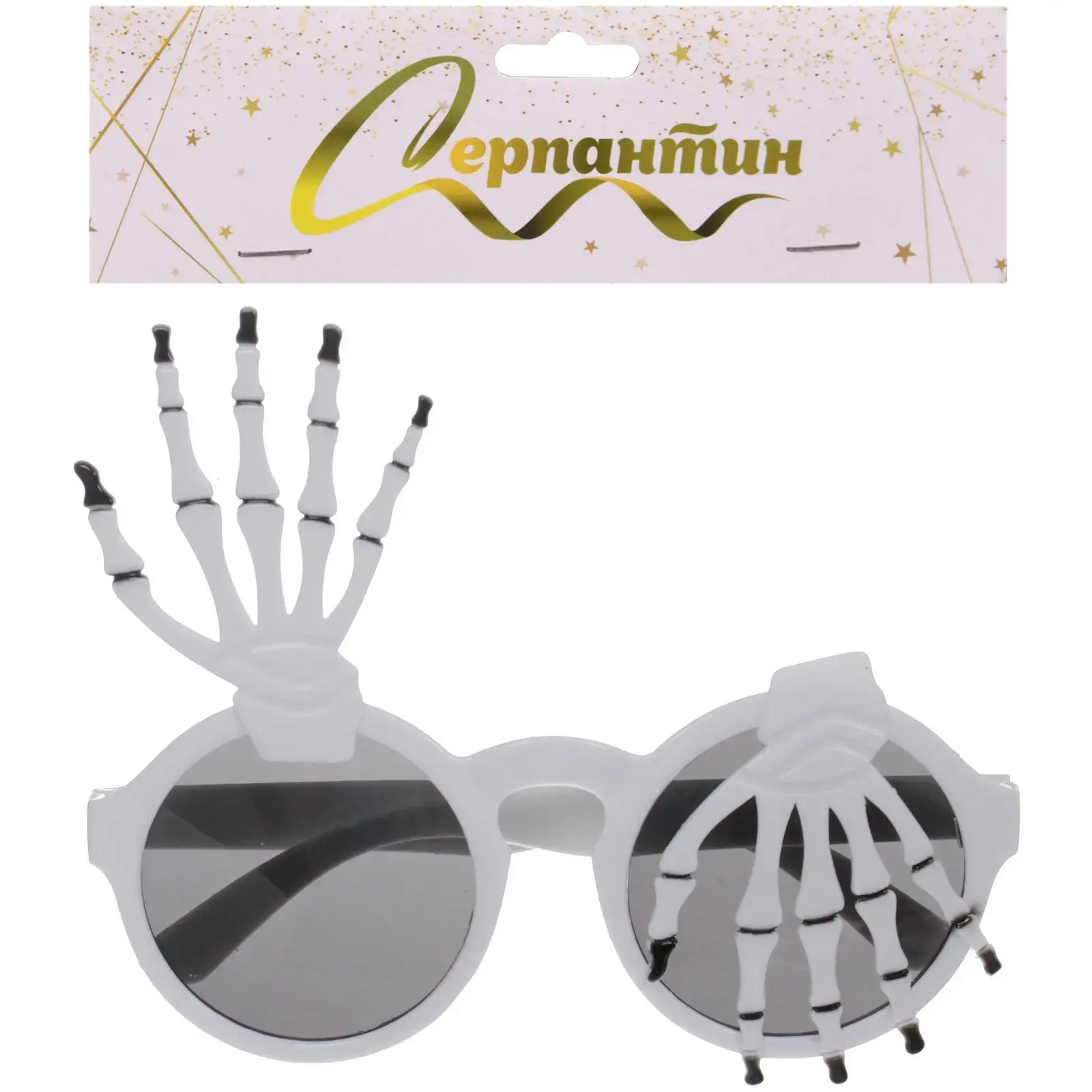 Очки имеют круглую форму и выполнены из легкого пластика, что делает их удобными для длительного ношения. Они подходят для взрослых и могут стать отличным дополнением к любому костюму. Линзы темного цвета защищают глаза от яркого света, а оригинальный дизайн в виде скелетных рук добавляет игривости вашему образу.