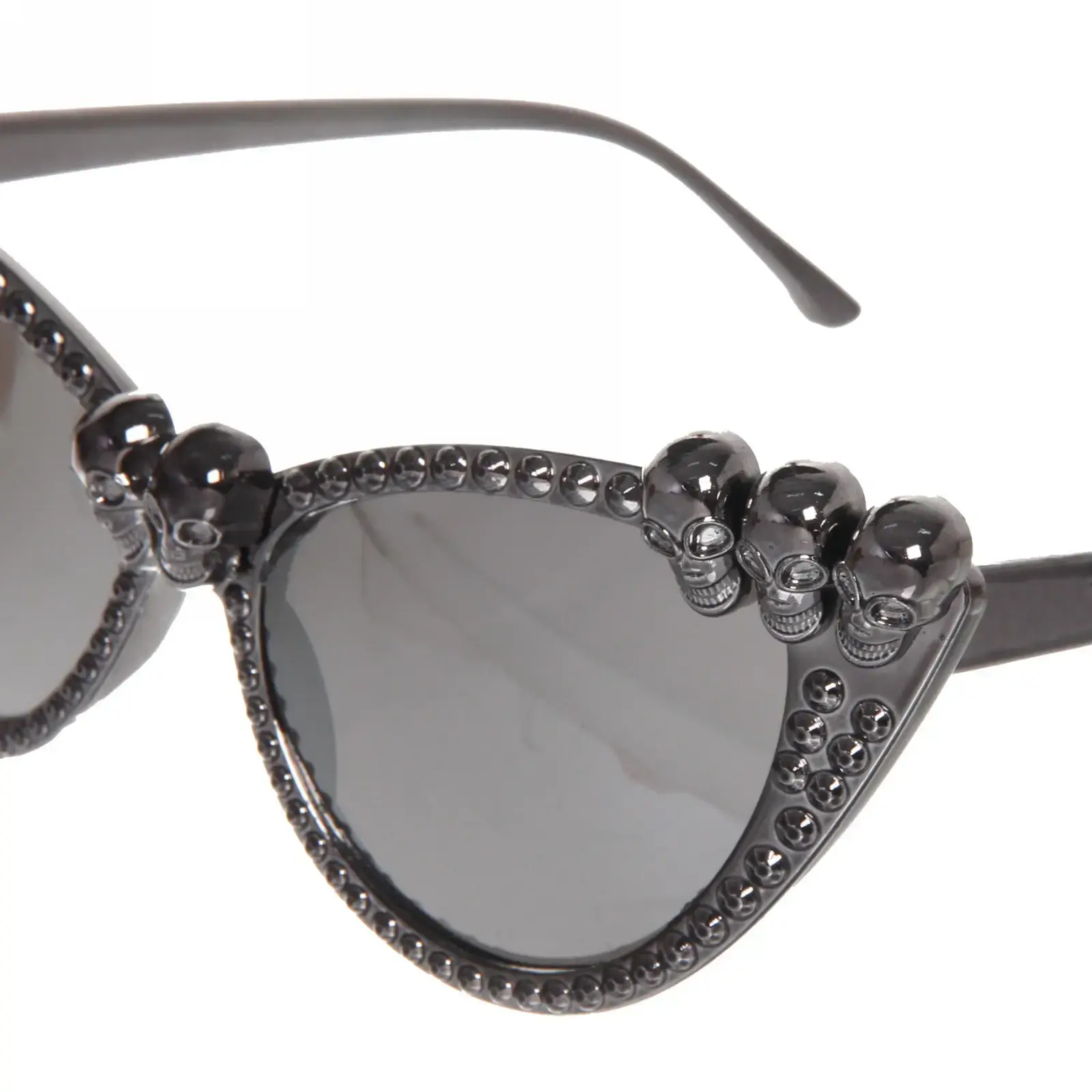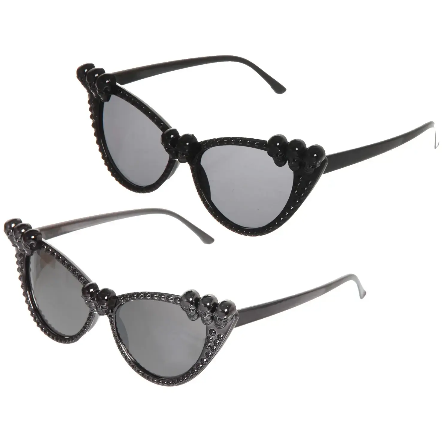 Эти карнавальные очки с уникальным декором в виде черепов станут главным акцентом вашего маскарадного образа. Смелый дизайн в стиле «кошачий глаз» с серебристо-черным градиентом подчеркнет индивидуальность и добавит нотку мистики в ваш стиль.