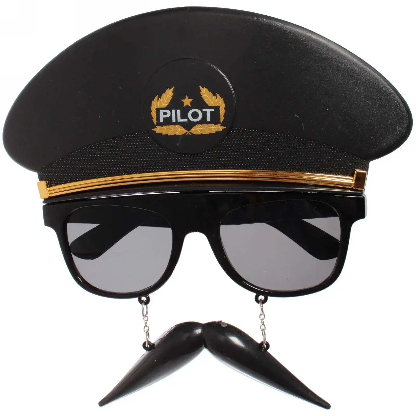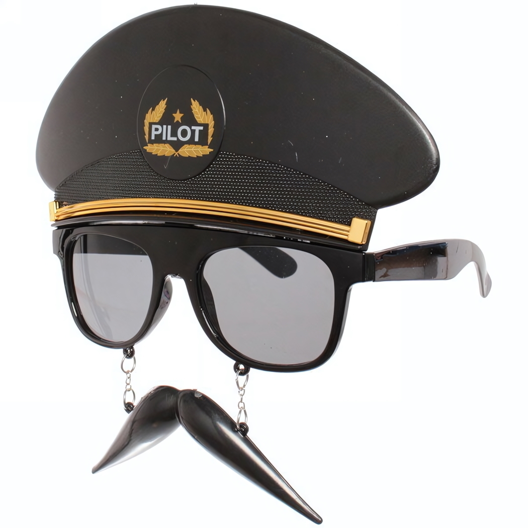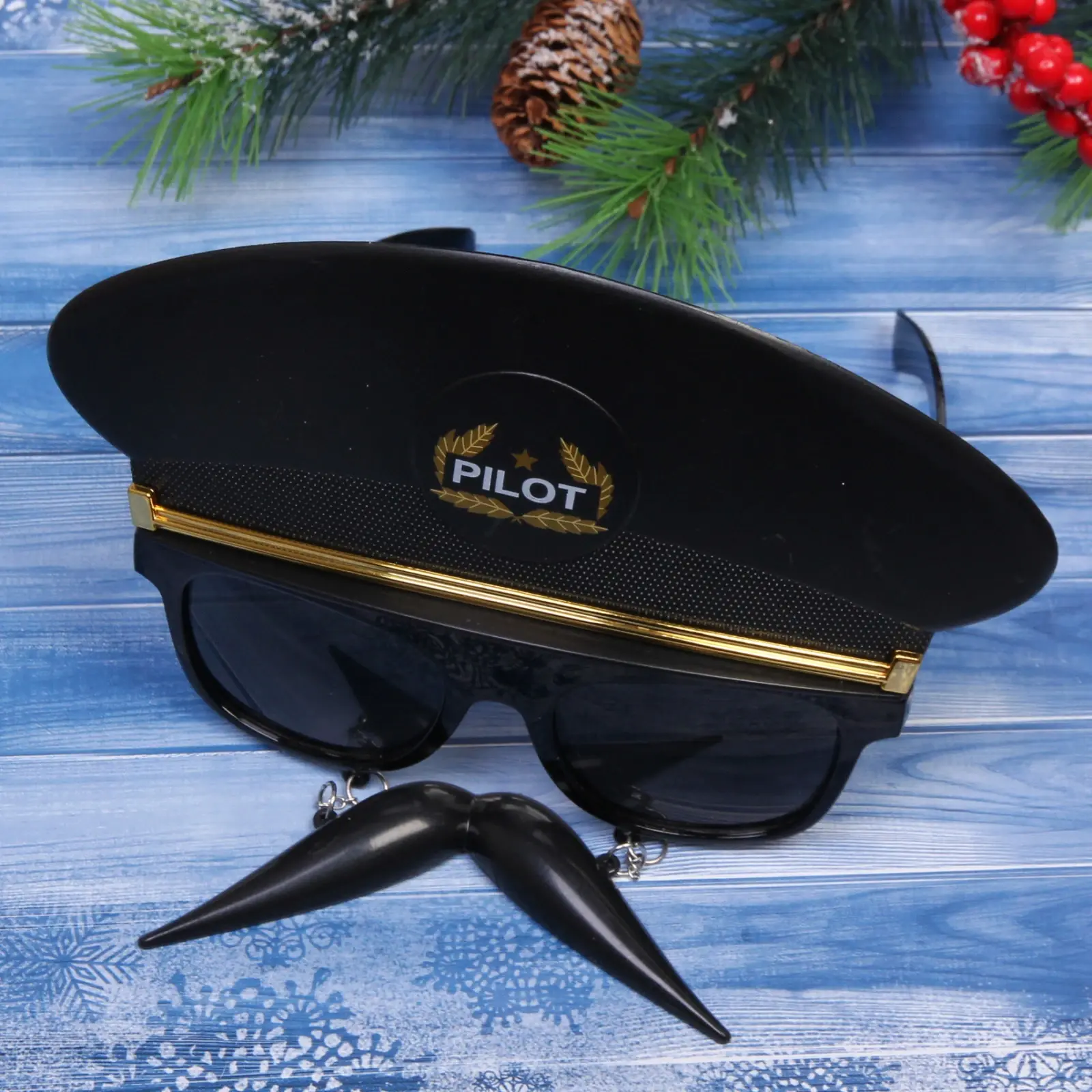 Наденьте пилотскую кепку, закрепите её на голове, присоедините к очкам цепочку с усами и наслаждайтесь комфортным видом в квадратных тёмных линзах. Идеально подходит для маскарадов, новогодних вечеринок, тематических фотосессий или просто для весёлого образа в домашней обстановке.