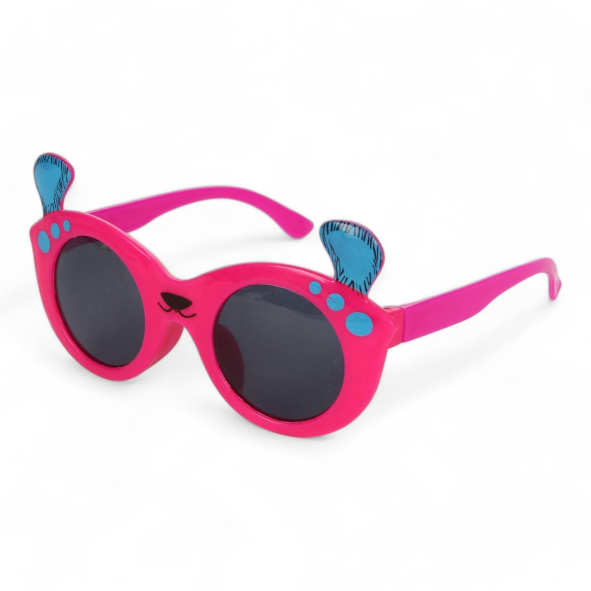 Солнечные очки имеют круглую форму и выполнены из прочного пластика, что делает их легкими и удобными для ношения. Они подходят для детей и молодежи, благодаря своему игривому дизайну с уникальными элементами, такими как ушки и декоративные точки на дужках. Очки легко надеваются и снимаются, что делает их идеальными для активных игр.