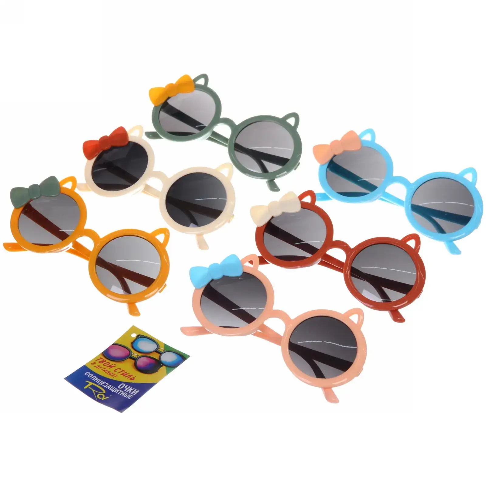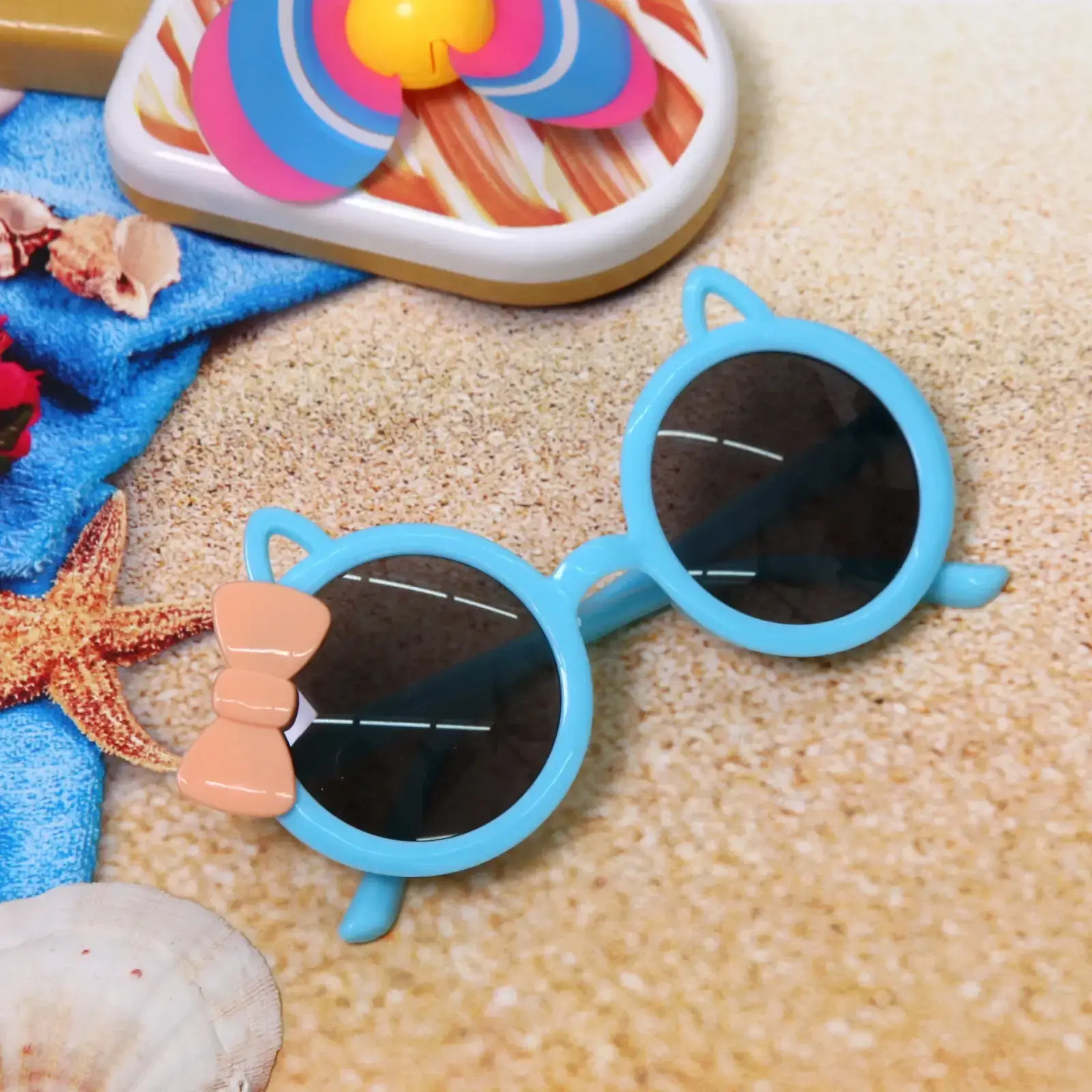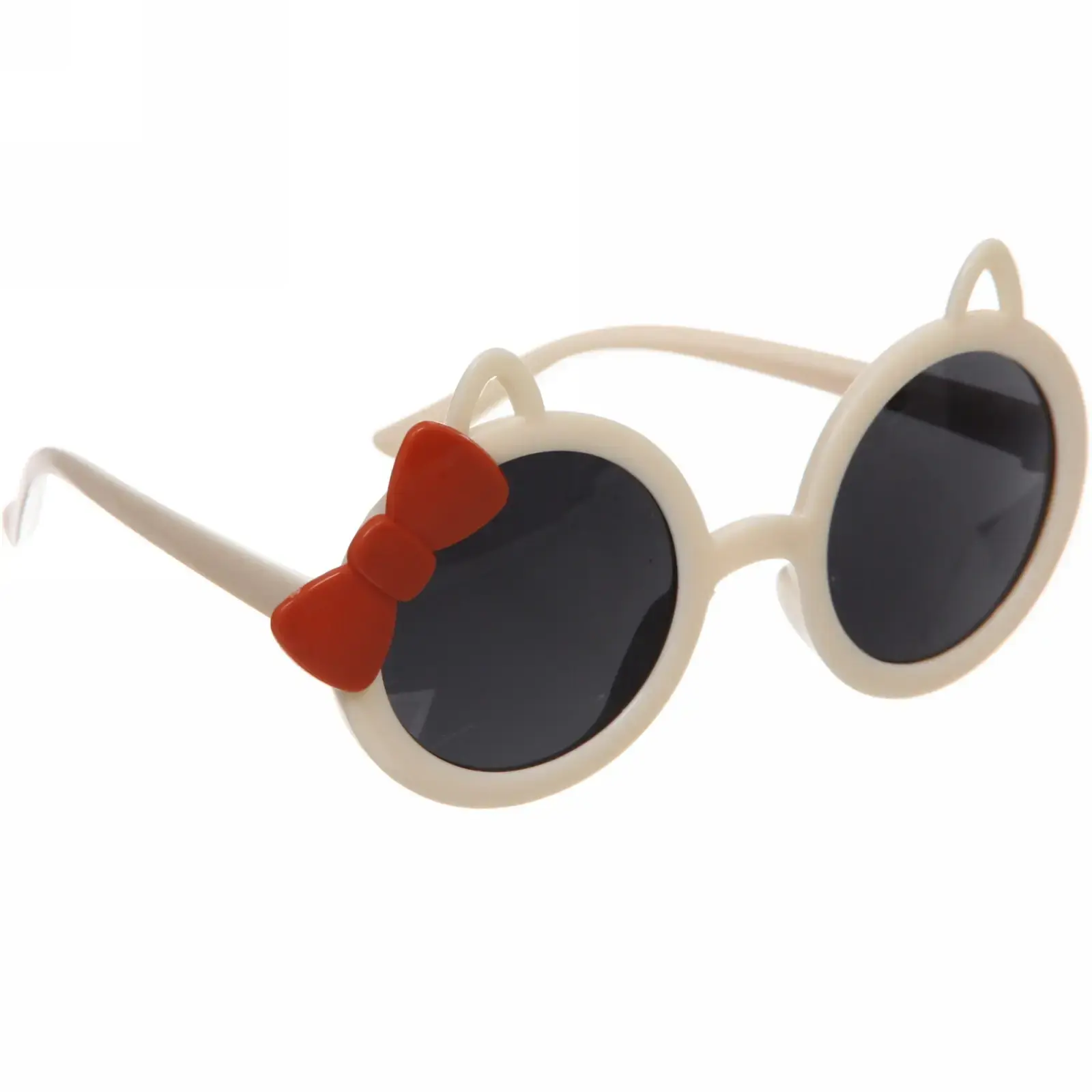 Яркие очки с игривым дизайном созданы для комфорта и безопасности вашего ребёнка на солнце. Модель с кошачьими ушками и декоративными бантиками превращает защиту глаз в модный аксессуар.