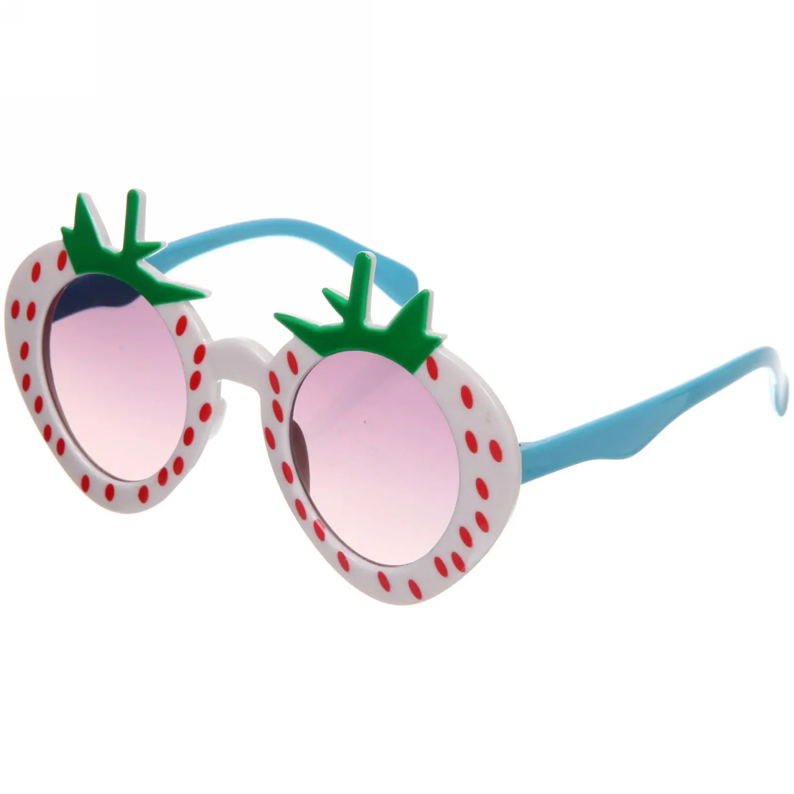 Очки рассчитаны на детей, выполнены из пластика, легкие и прочные. Клубничная форма оправы и тонированные линзы обеспечивают защиту глаз от солнца. Удобные дужки держат очки на носу, а цвета представлены в ассортименте, поэтому каждый найдёт стиль, который понравится вашему ребенку.