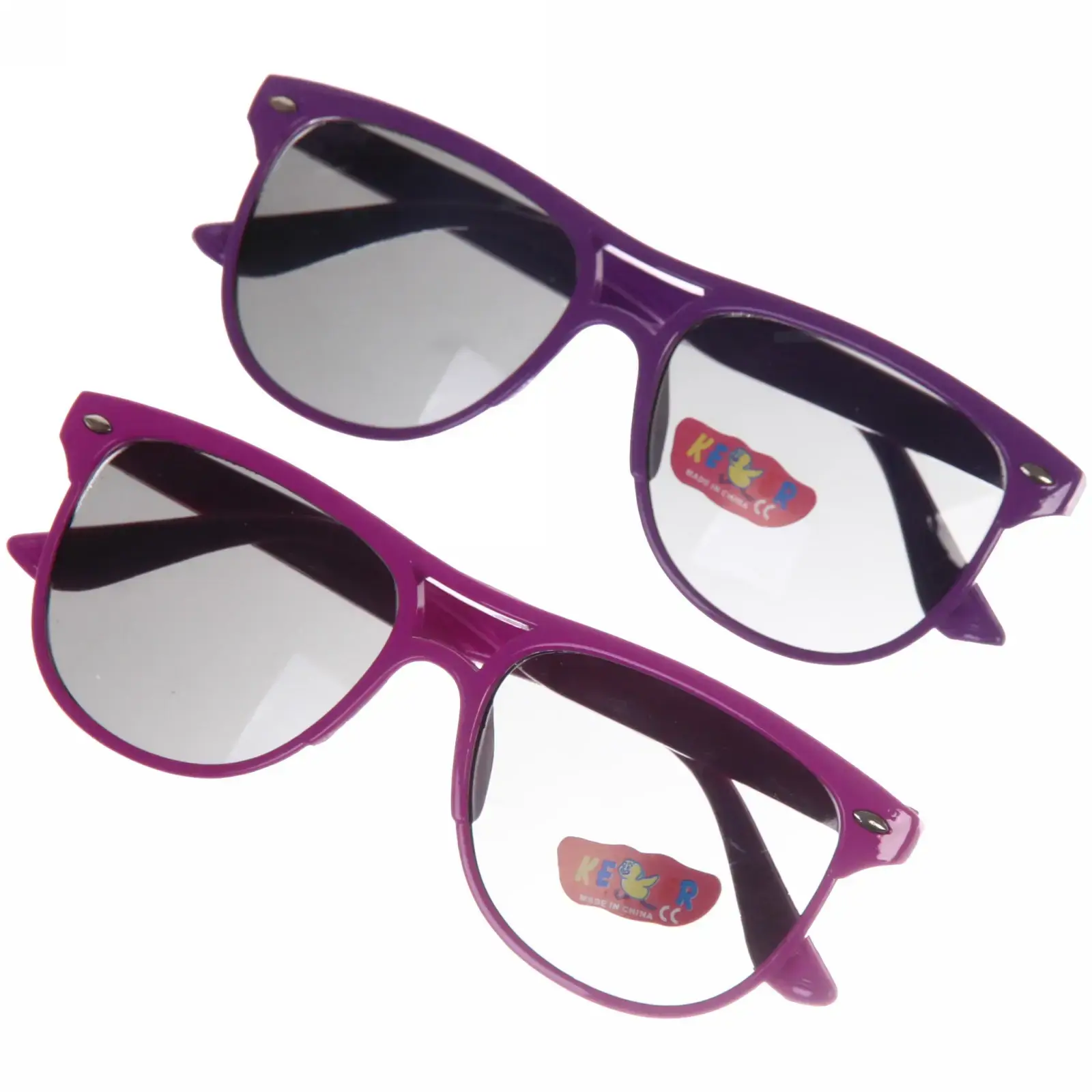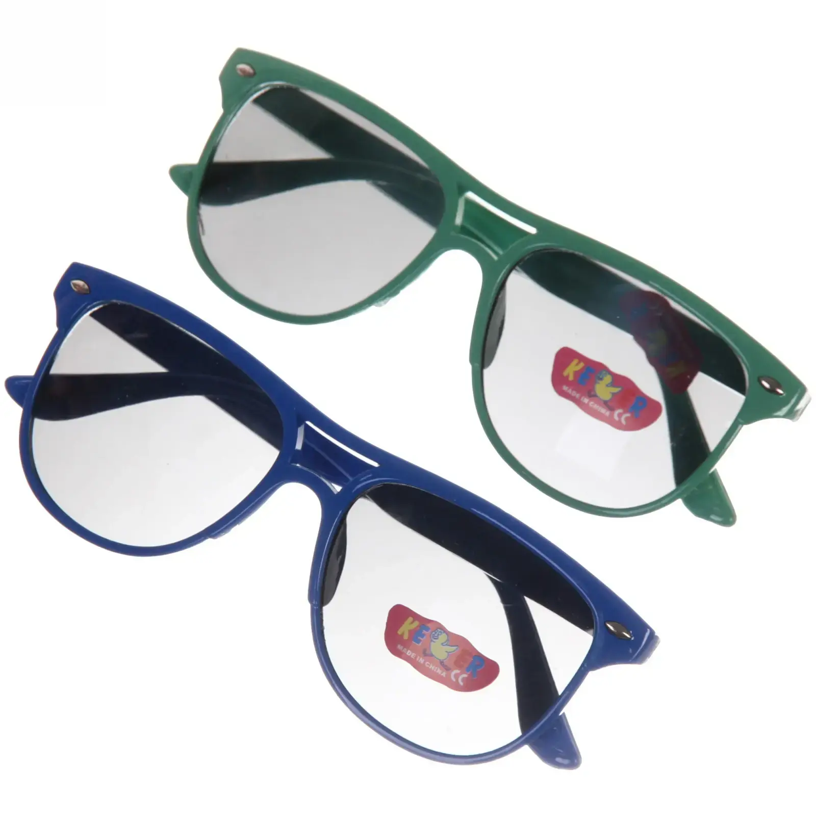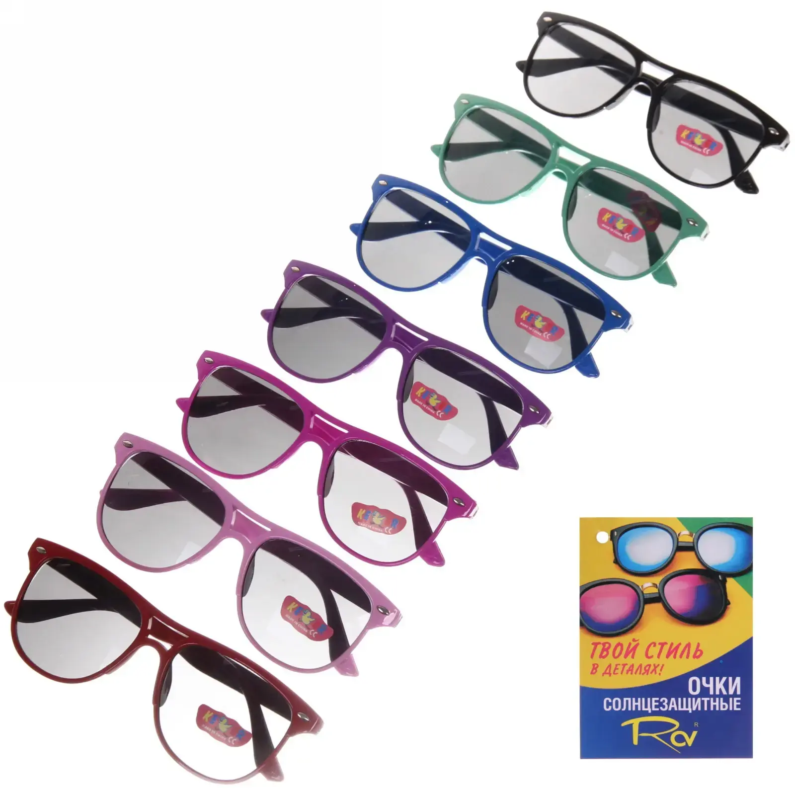 Очки выполнены из качественного пластика, что делает их легкими и долговечными. Они представлены в нескольких цветах, включая черный, зеленый, синий, фиолетовый и красный, что позволяет выбрать идеальный вариант для каждого маленького модника. Размеры очков оптимально подходят для детей, обеспечивая комфортную посадку.