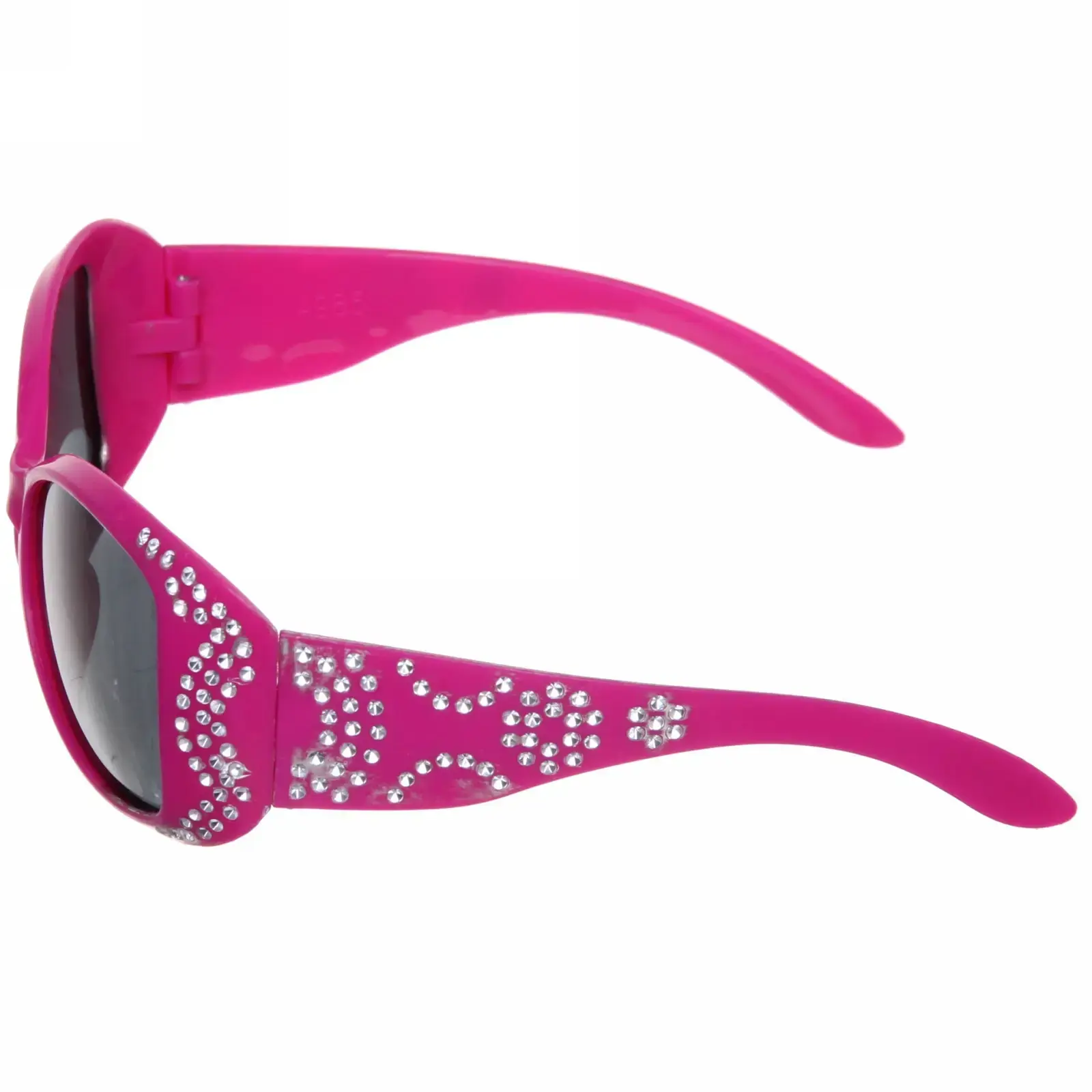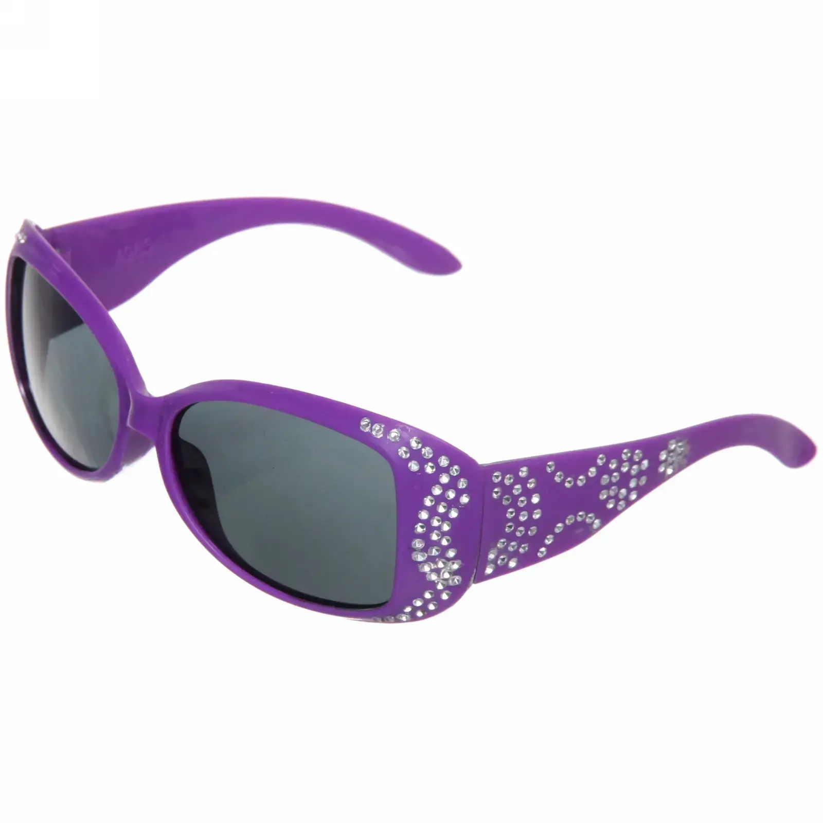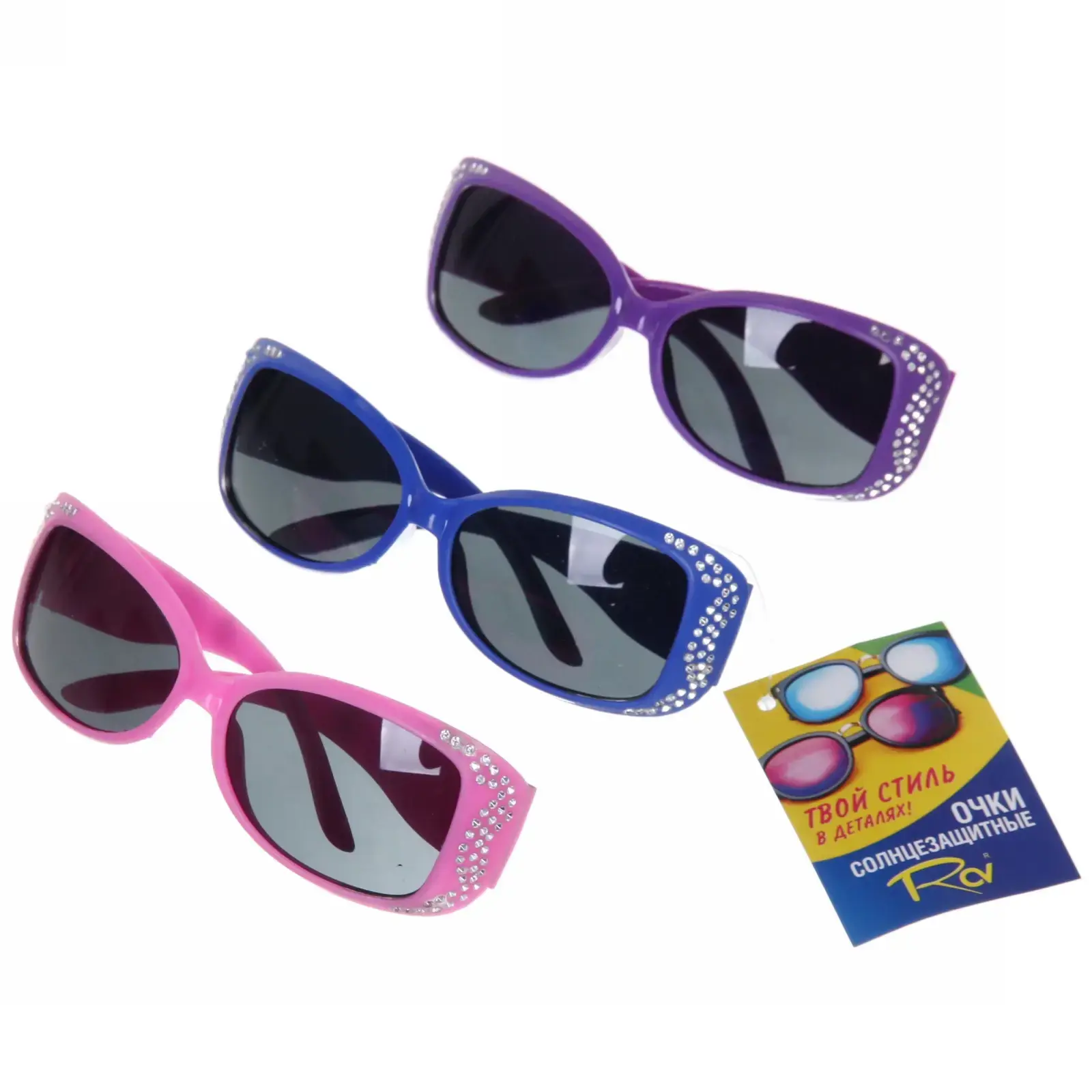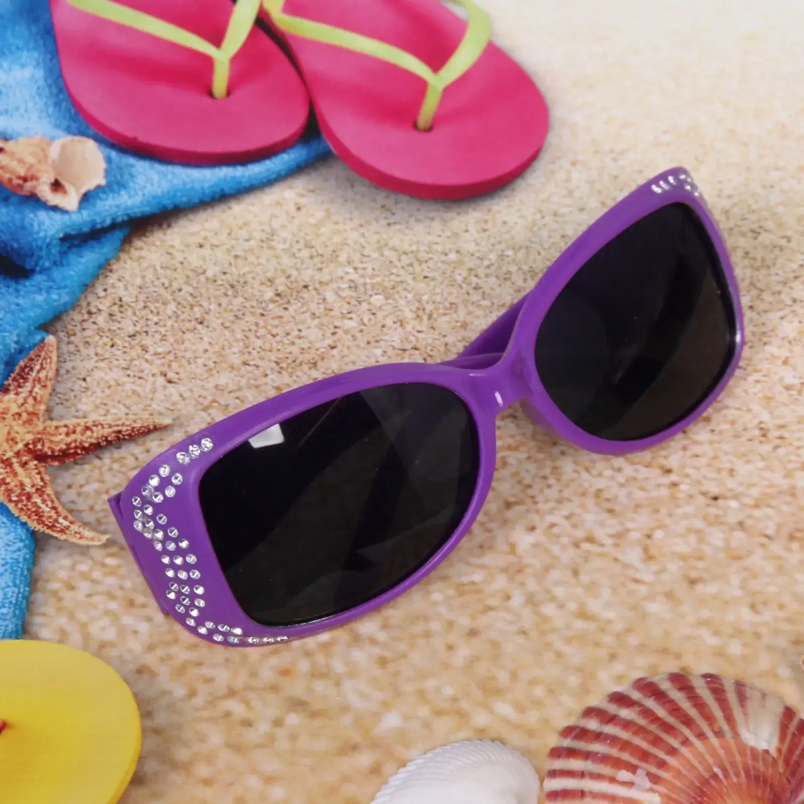 Очки выполнены из качественного пластика, что делает их легкими и долговечными. Фиолетовая оправа украшена блестками, что придает им уникальный вид. Размеры очков подходят для детей, но точные параметры не указаны. Эти очки станут отличным аксессуаром для летнего сезона, обеспечивая защиту и стиль.