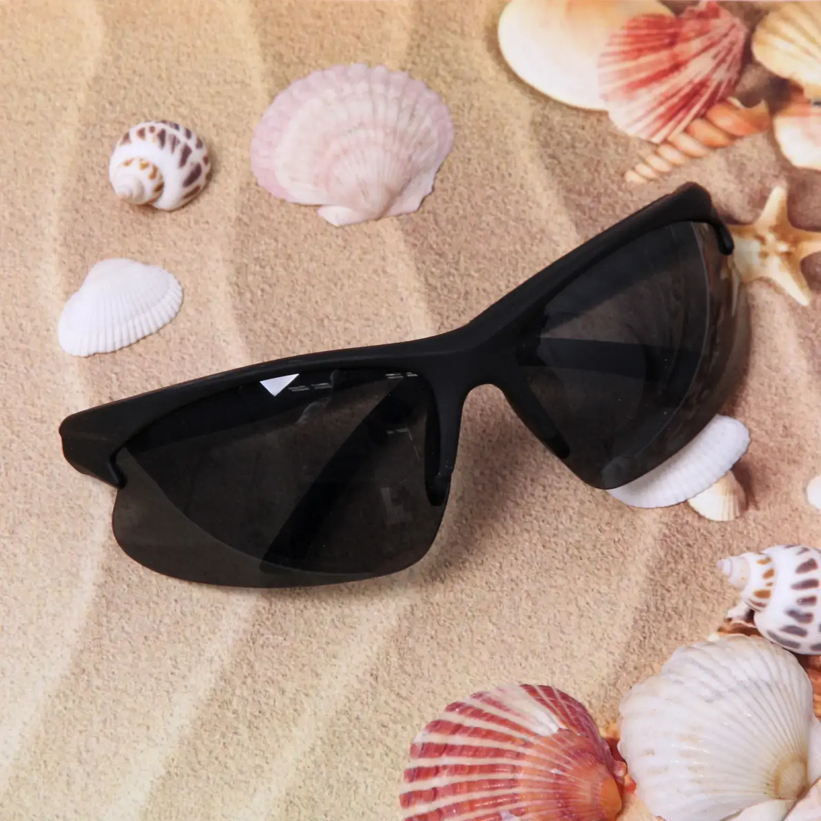 Очки имеют черную пластиковую оправу и затемненные линзы, что делает их универсальными для любого стиля. Их размеры не указаны, но они подходят для большинства взрослых. Не упустите возможность добавить этот стильный и практичный аксессуар в свой арсенал для активного отдыха!