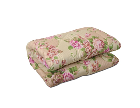 Размер одеяла составляет 172х205 см, что делает его подходящим для односпальных и двуспальных кроватей. Основной цвет одеяла — бежевый с розовыми и зелеными цветами, что позволяет легко сочетать его с различными текстильными изделиями в вашем доме.