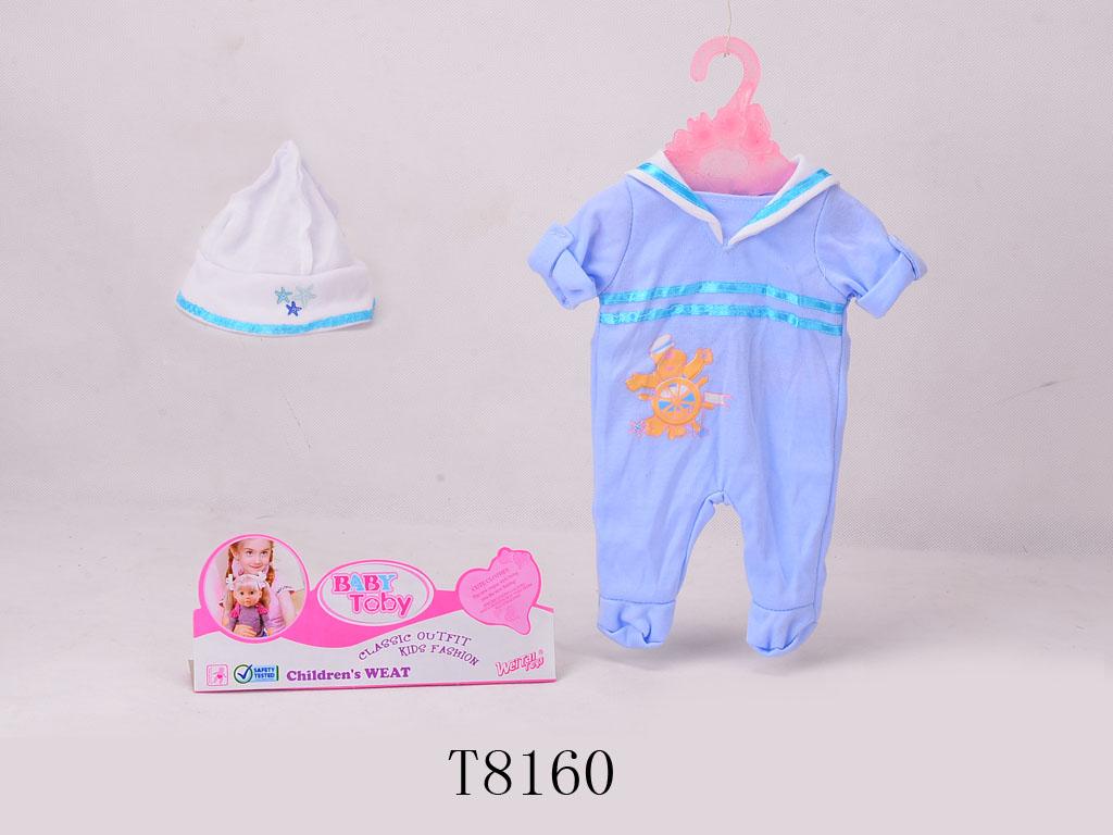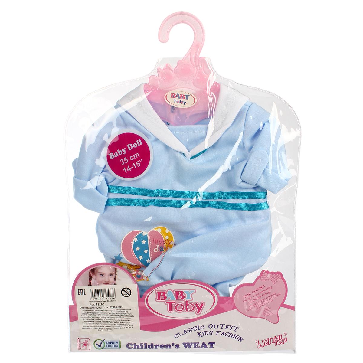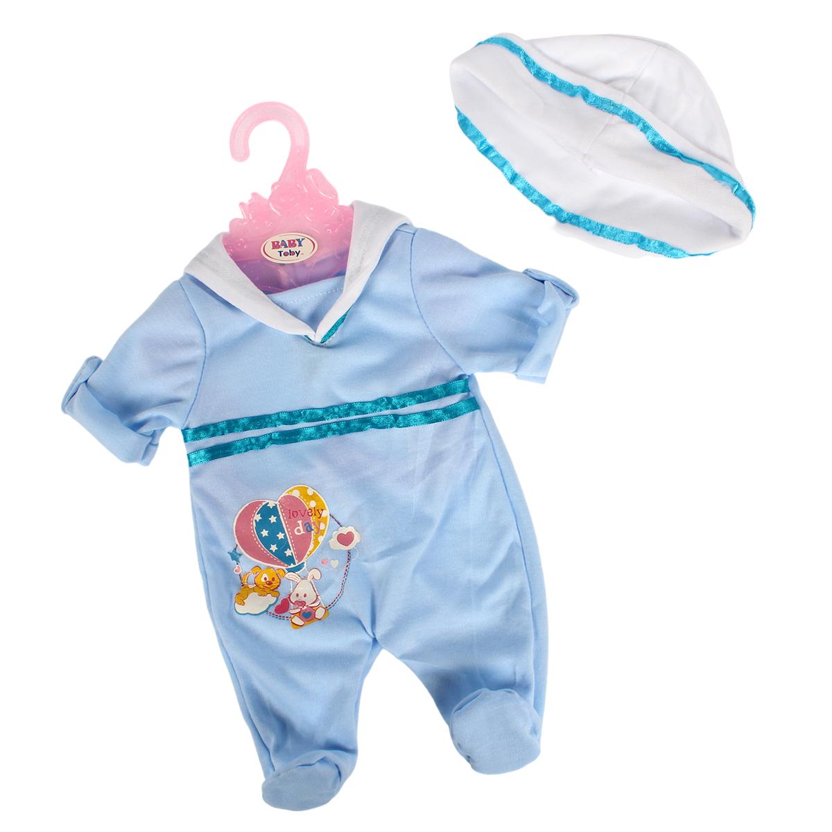 Комплект одежды для куклы 35 см, текстиль, голубой с белым воротником и шапочкой