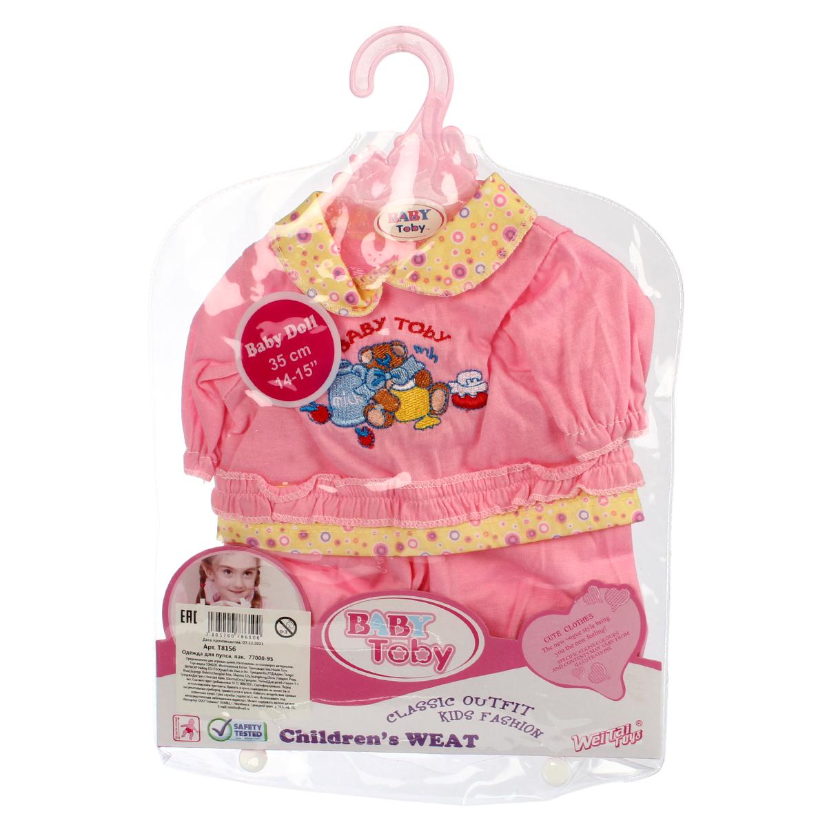 Костюм для кукол «BABY TOBY», розовый, с вышивкой медвежонка, размер 35 см, текстиль