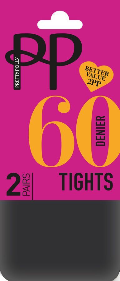 Колготки классические 'Pretty Polly', 60 ден, 2 пары, черные, размер S-M, шелковистая отделка