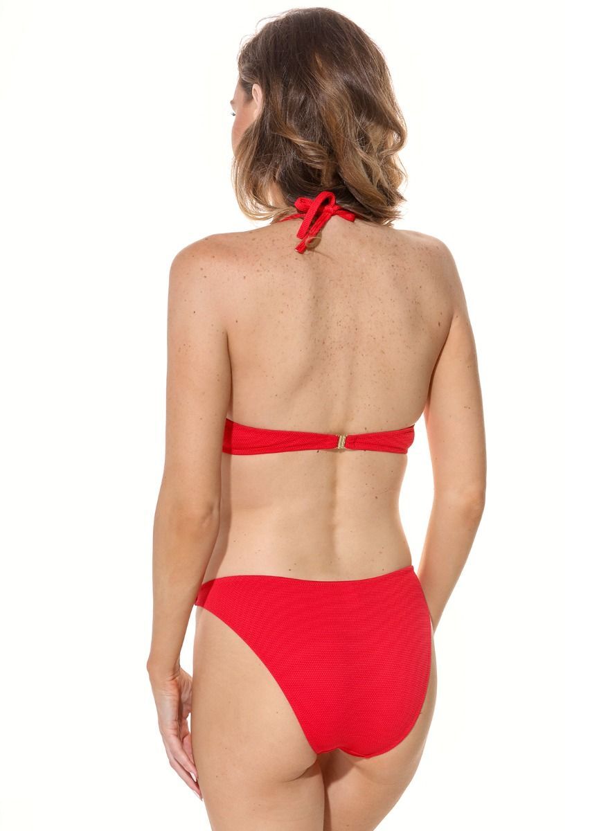 Купальник состоит из бюстгальтера с градуированными чашками и трусиков-слип, что позволяет легко регулировать посадку и обеспечивать идеальную поддержку. Застежка на спине с поворотным замком и бретель через шею делают его удобным в носке. Этот купальник идеально подходит для женщин, которые ценят стиль и комфорт.