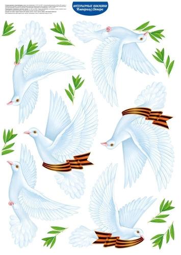 Оформительские наклейки "Голуби мира" (голуби с георгиевской лентой) 30001885 (Империя поздравлений)