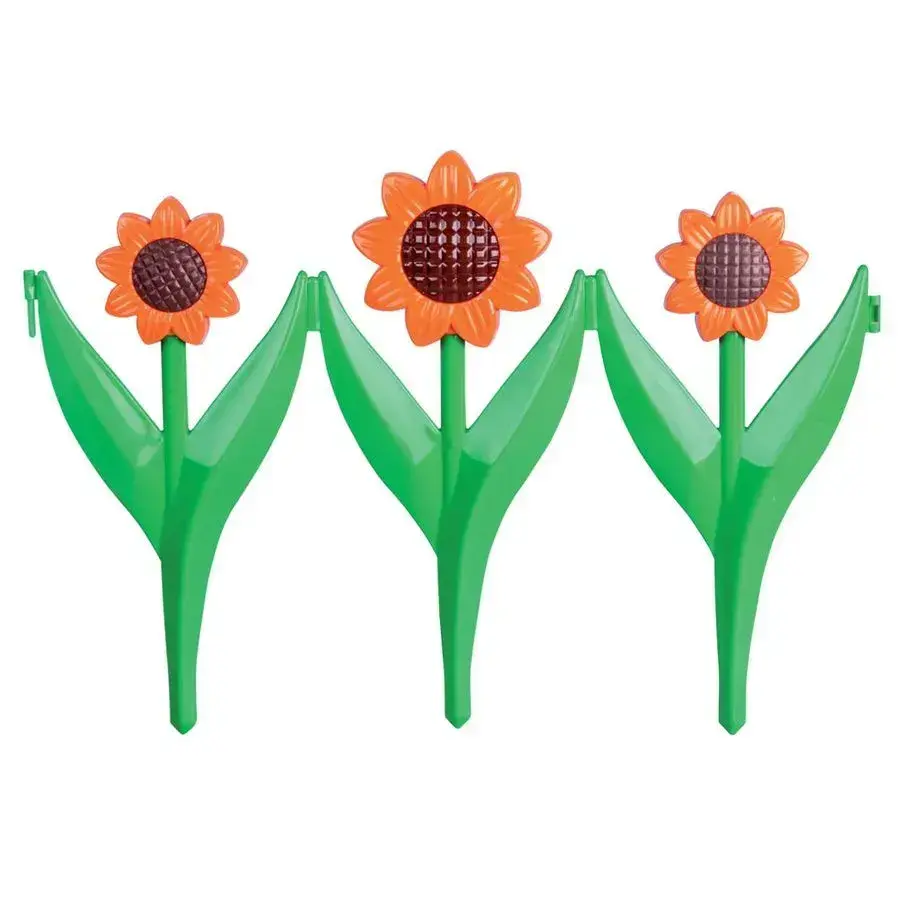 Каждый элемент высотой 45 см состоит из трёх частей: коричневый центр с рельефной текстурой, оранжевые лепестки и зелёный стебель. Для устойчивости нижняя часть заглубляется в землю на 10-15 см. Совместимы с любыми типами грунта.