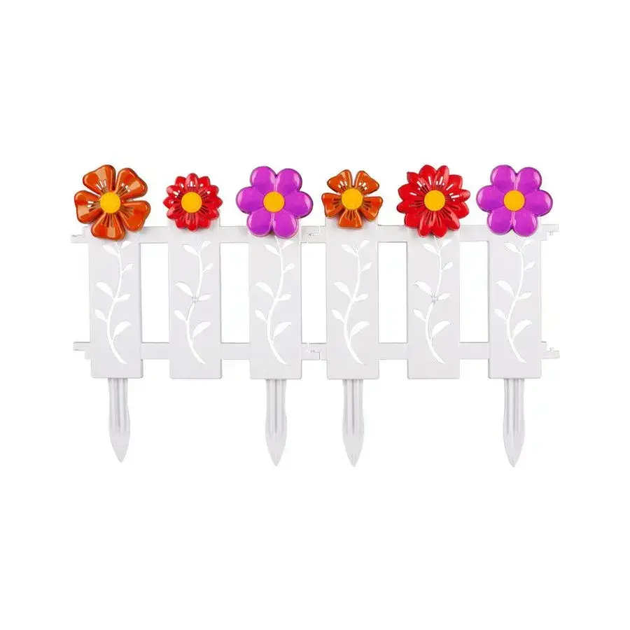Декоративное ограждение «Цветочный рай» с цветами, пластик белый, микс из 5 цветов