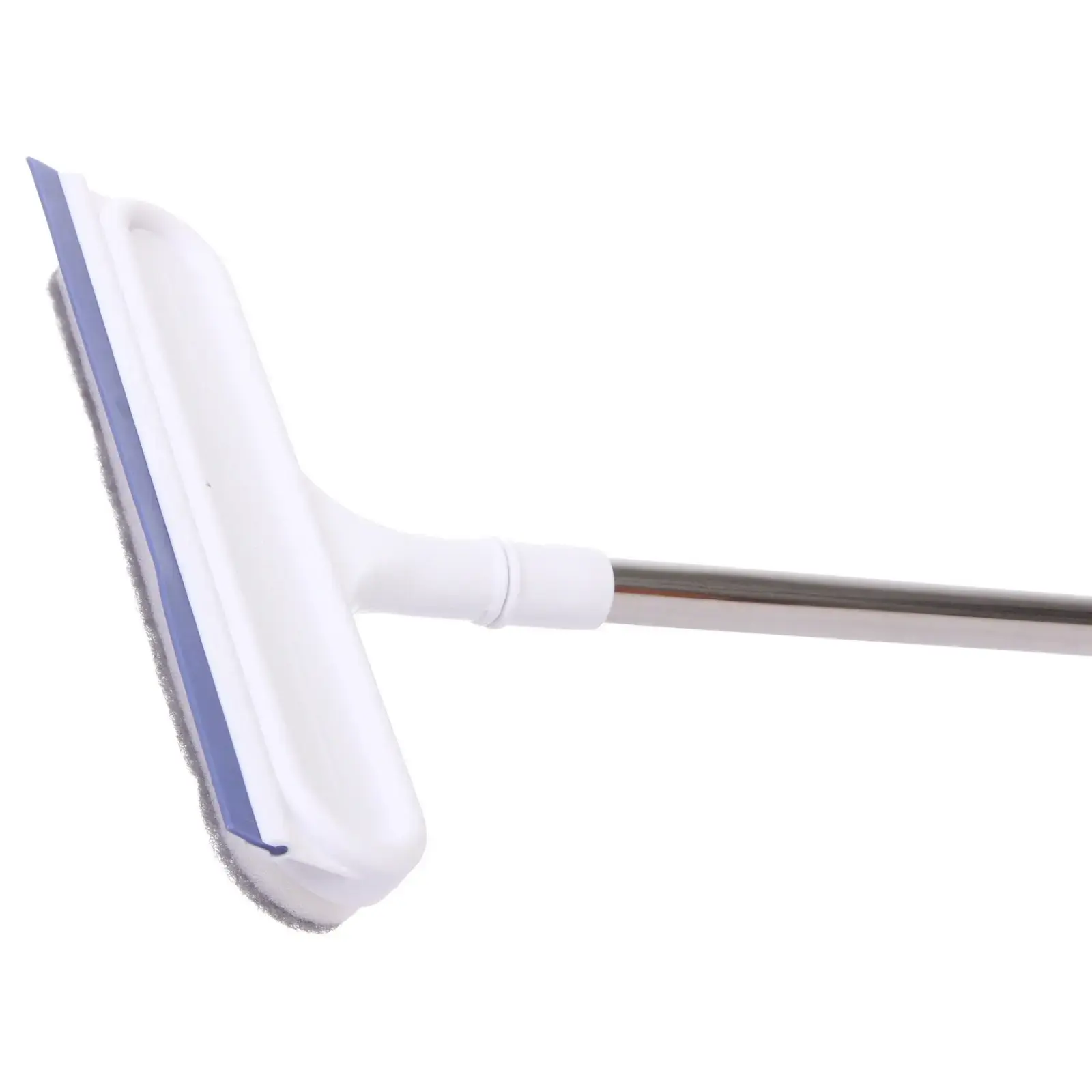 Окномойка оснащена поворотной головой с надежной кнопкой-фиксатором, что позволяет регулировать угол наклона для достижения труднодоступных мест. Телескопическая ручка выполнена из прочного металла и имеет рычажную фиксацию, что обеспечивает надежность и долговечность в использовании. Этот инструмент подходит для мытья стекол, зеркал и других гладких поверхностей, что делает его универсальным решением для уборки.