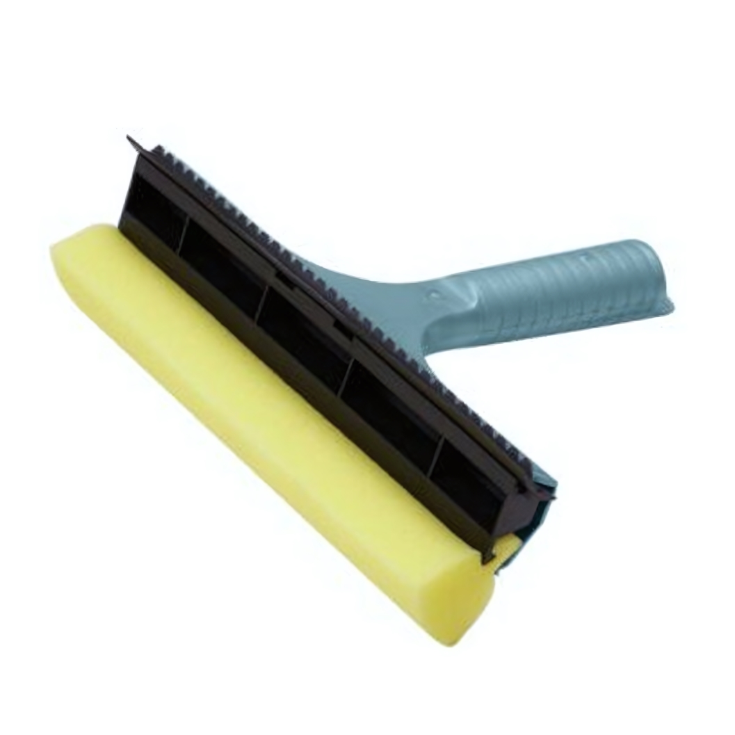 Рабочая часть сочетает поролоновую губку для тщательного отмывания пыли и следов от осадков и резиновую кромку для эффективного удаления воды. Такой формат экономит время: не нужно менять инструменты во время уборки. Эргономичная рукоятка комфортно лежит в руке и обеспечивает уверенный контроль движений даже при длительном использовании.