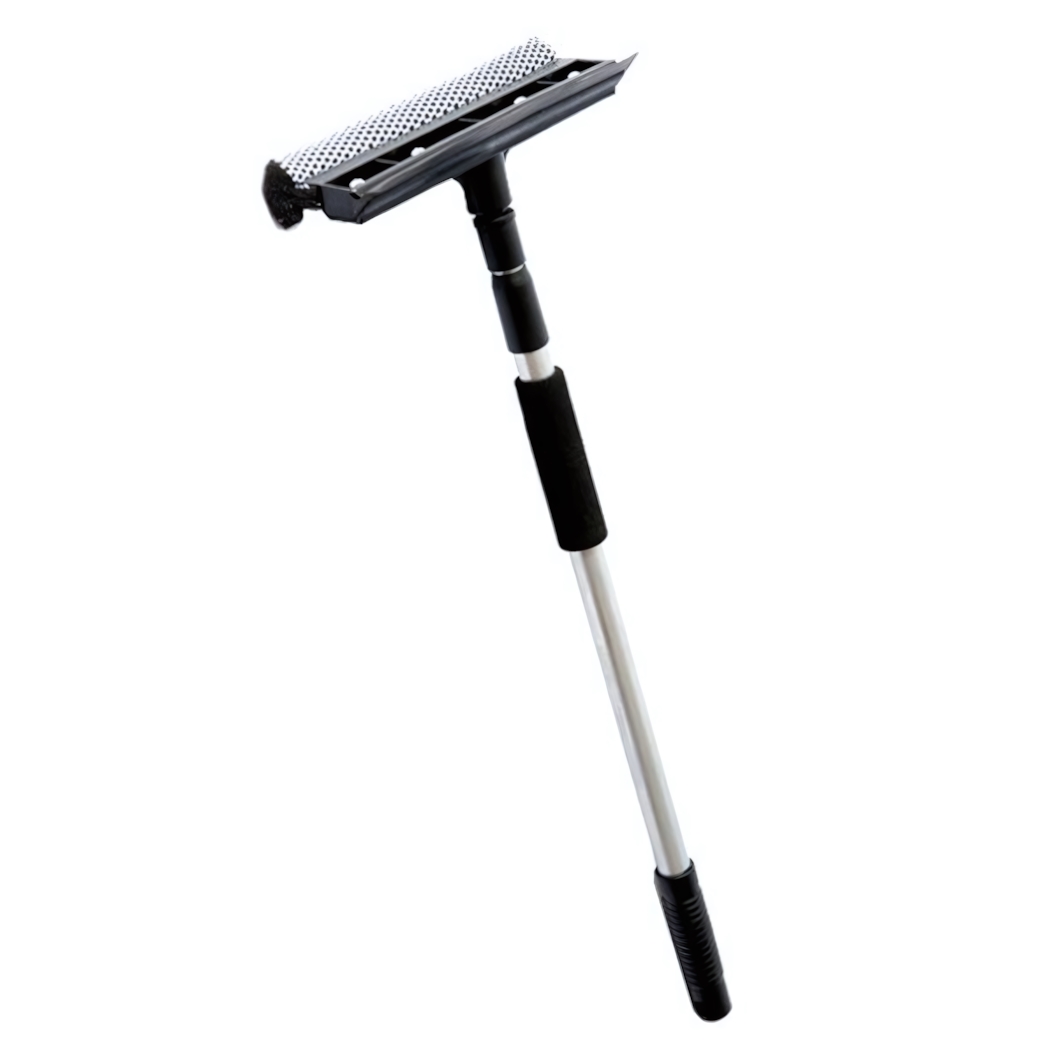 - Двусторонняя насадка: губка для мытья и водосгон для удаления воды.
