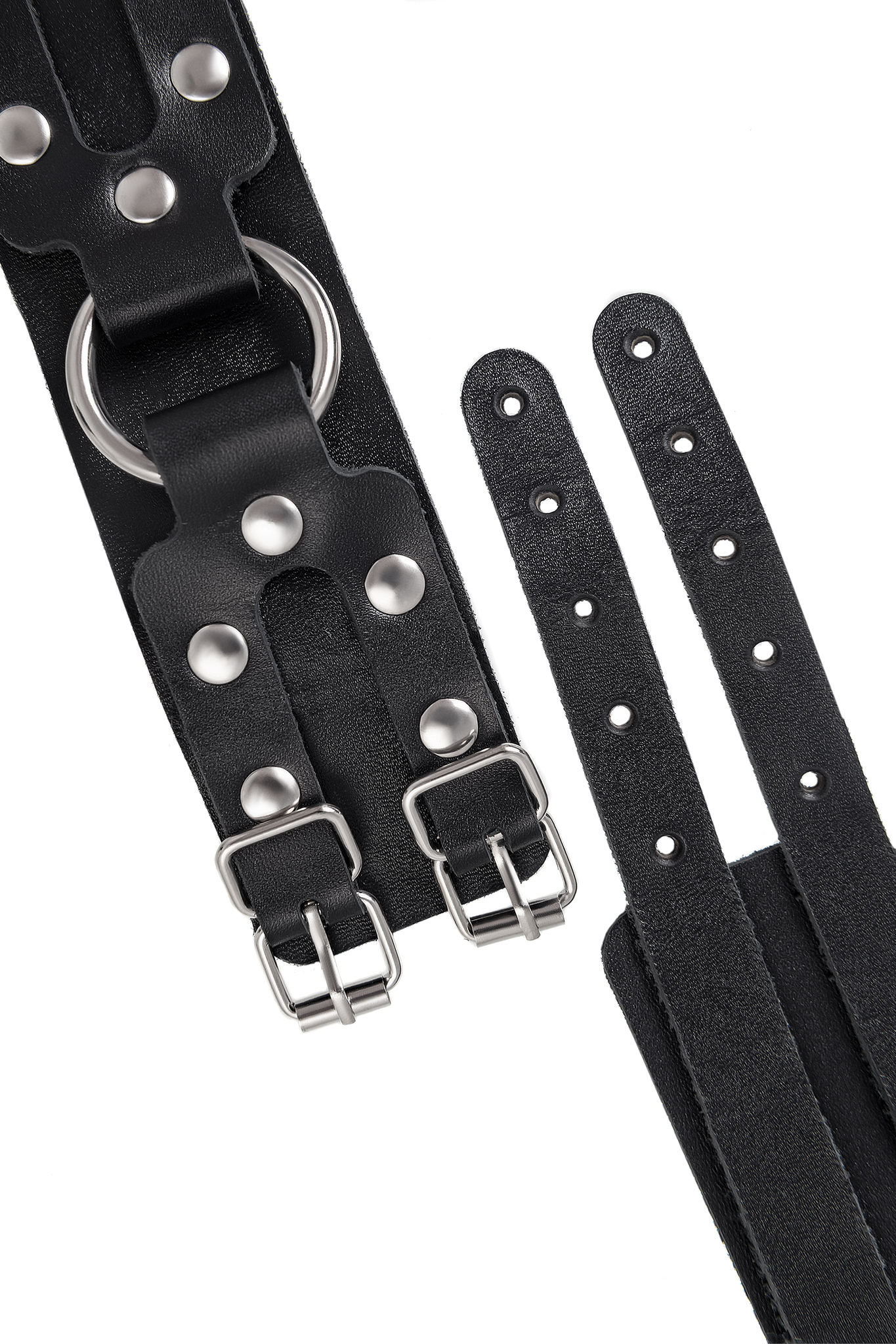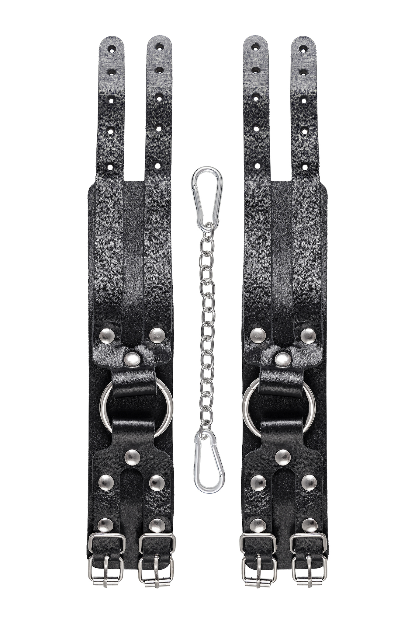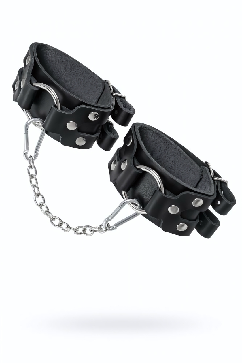Оковы BDSM "Pecado" с цепочкой, натуральная кожа, черные, 22х5см
