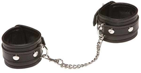 - Два браслета-наручника из искусственной кожи черного цвета с металлическими пряжками.