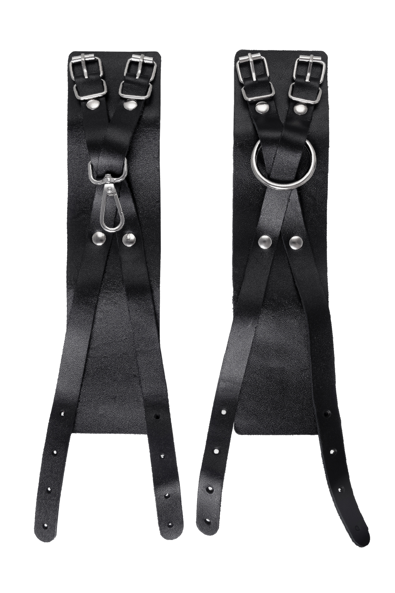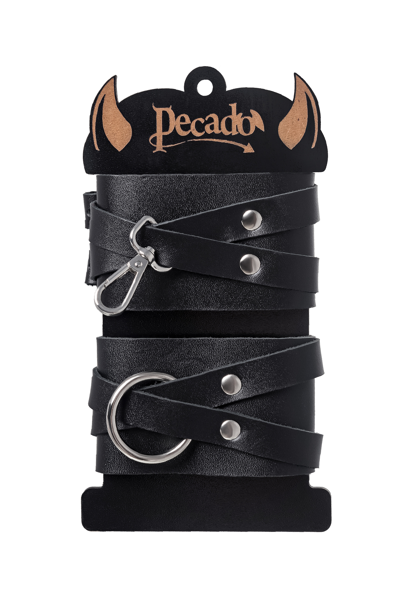 Оковы BDSM Pecado, 2 регулируемых ремешка с карабином и кольцом, натуральная кожа, 25х6 см