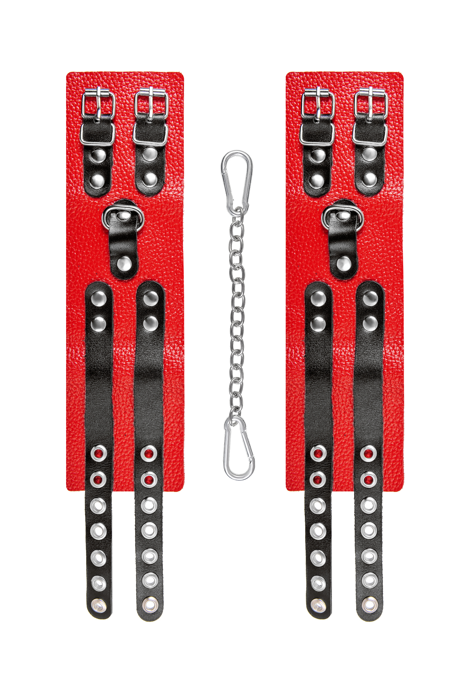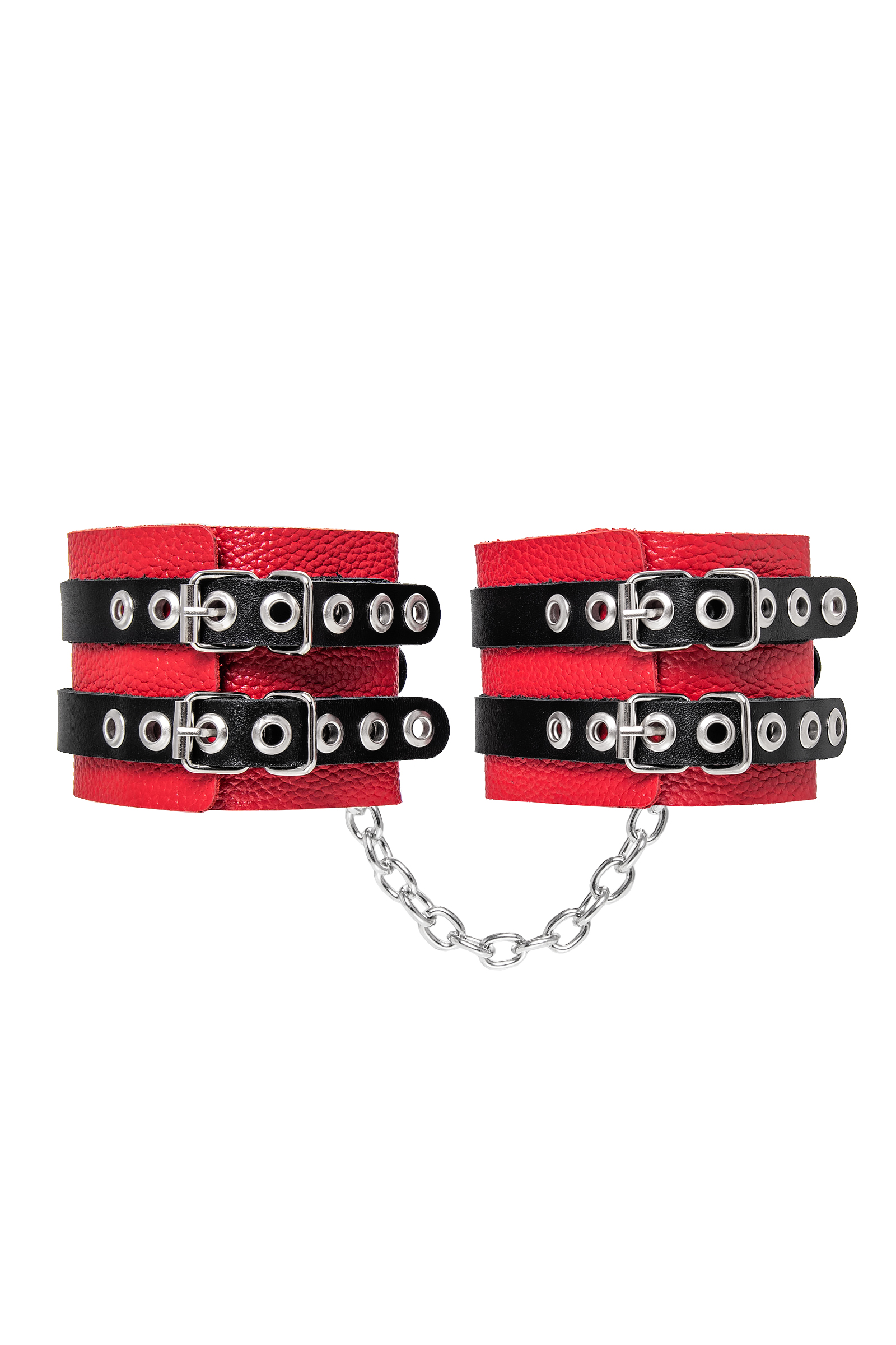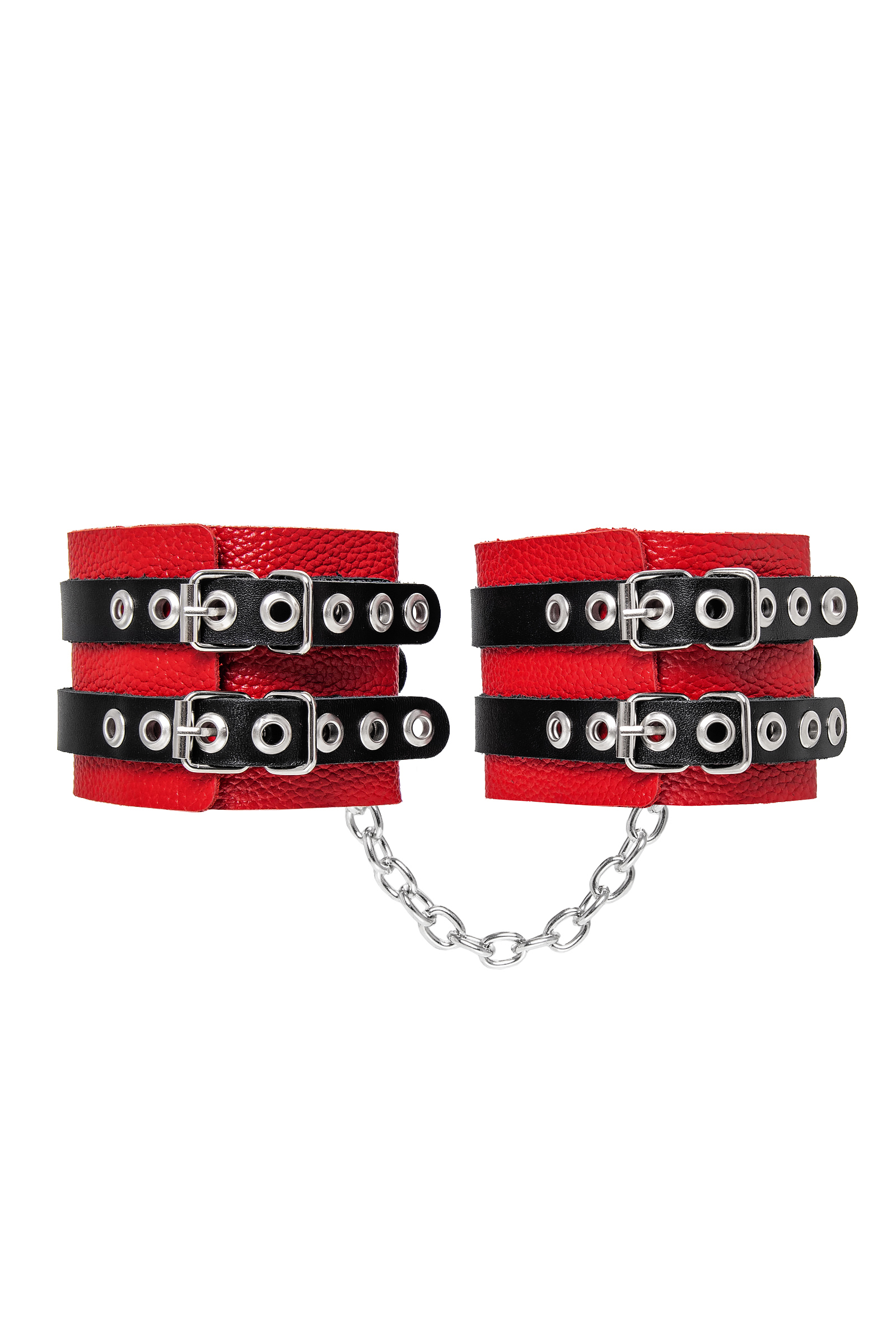 Оковы Pecado 'RedPassion' с цепочкой, натуральная кожа, красные/черные, регулируемые, 25см