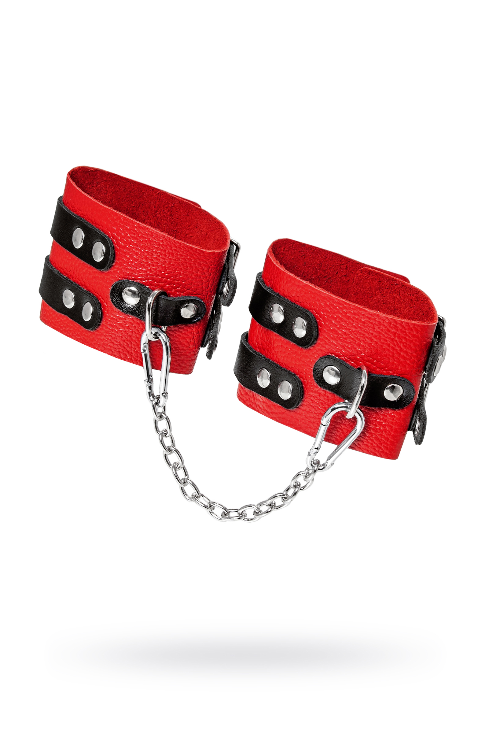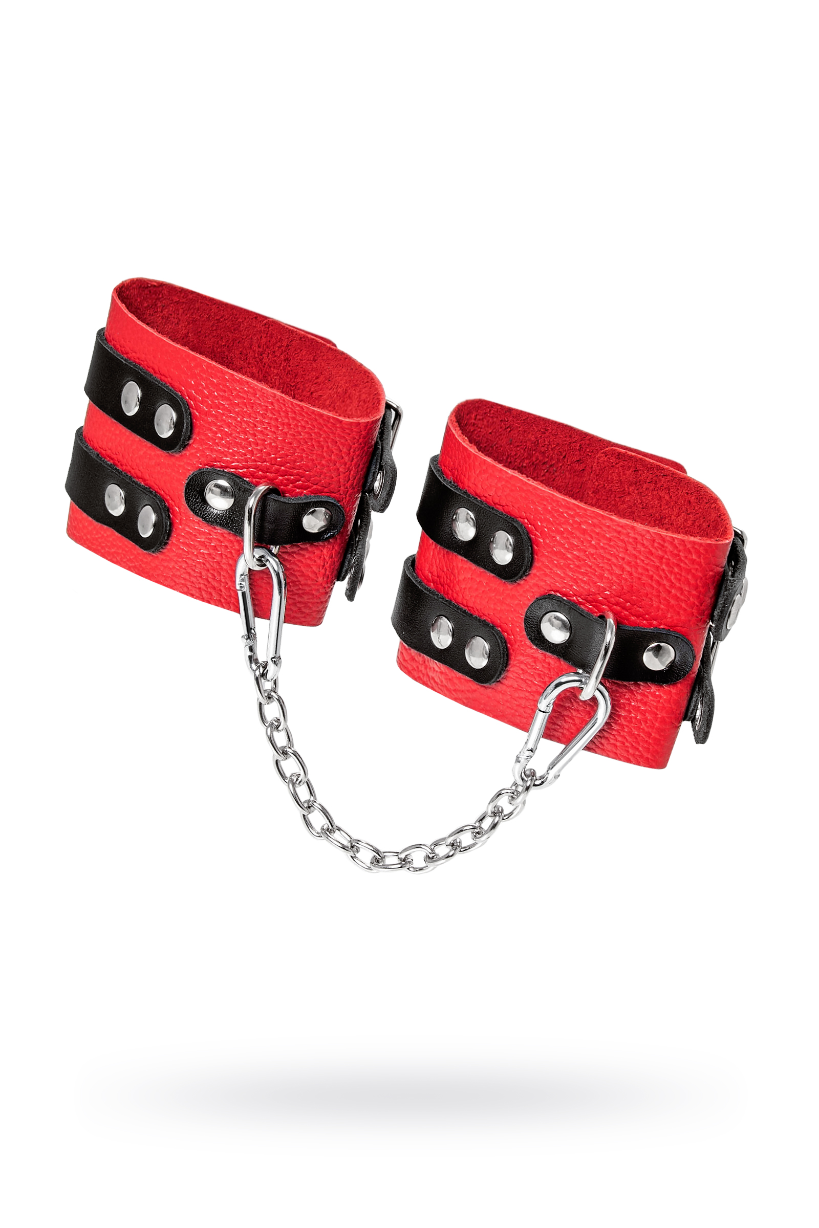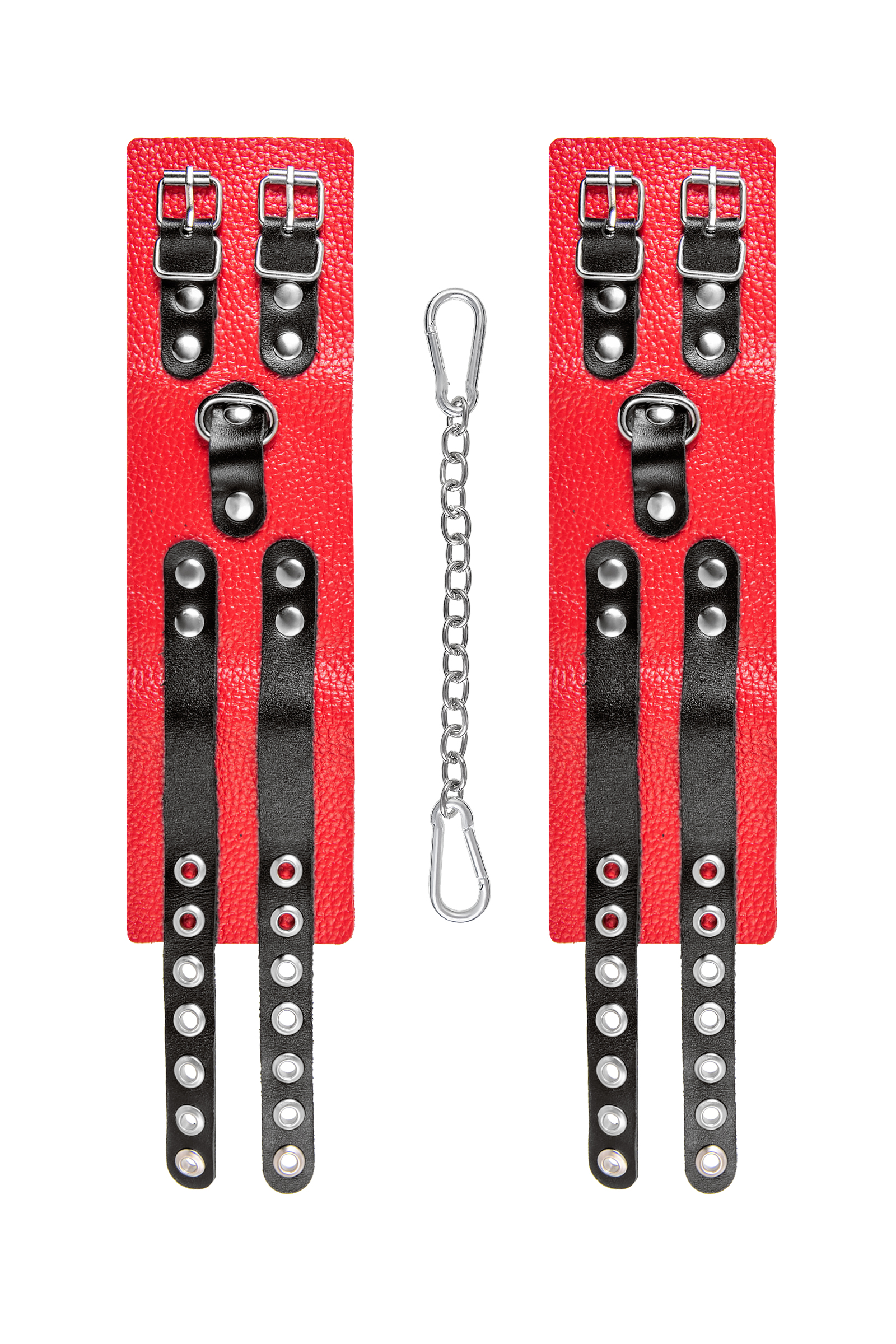 Оковы Pecado 'RedPassion' с цепочкой, натуральная кожа, красные/черные, регулируемые, 25см