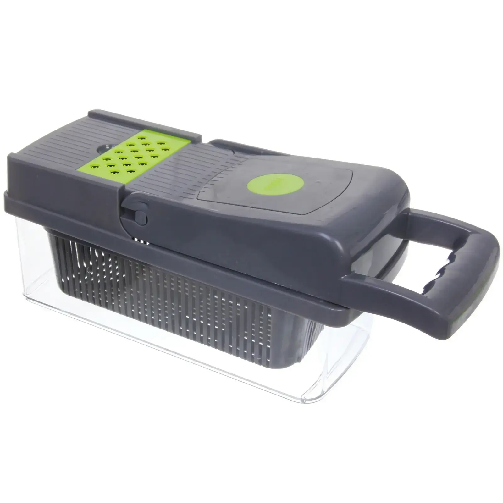 Овощерезка предназначена для нарезки, терки и измельчения различных продуктов. Она подходит как для домашних кулинаров, так и для профессиональных поваров. В комплект входят несколько насадок, которые позволяют нарезать продукты в различных формах: кубиками, соломкой, ломтиками и даже фигурной соломкой. Прозрачный контейнер для сбора нарезанных ингредиентов делает процесс еще более удобным.