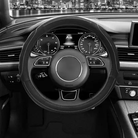 Изготовленная из полиуретана с ребристыми вставками, она обеспечивает превосходное сцепление и комфорт при управлении. Ее универсальный черный цвет гармонично впишется в любой интерьер автомобиля, создавая ощущение обновленного и более солидного салона.