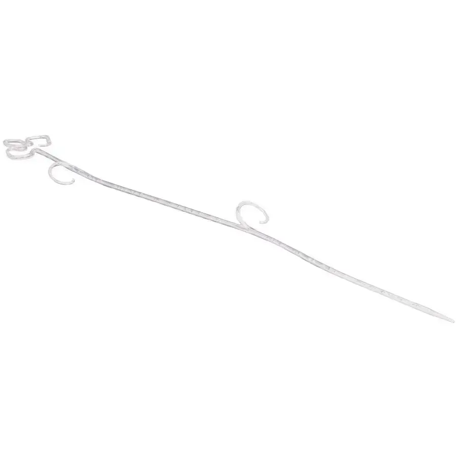 Опора изготовлена из прочной тонкой проволоки серебристого цвета. Конструкция включает несколько крючков и изгибов для точечной фиксации стеблей. Благодаря компактным размерам легко устанавливается в цветочные горшки стандартного диаметра.