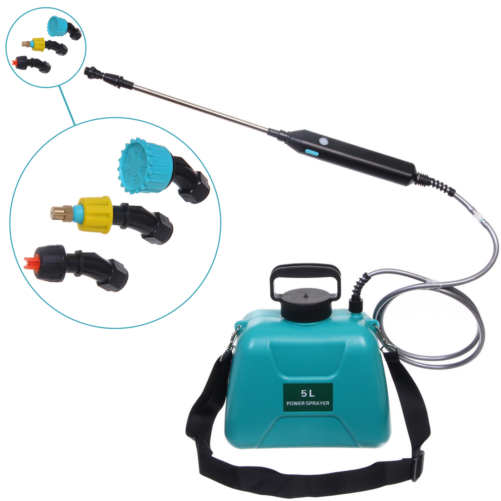 Опрыскиватель аккумуляторный 5л, зеленый, USB-зарядка, дальность 5м
