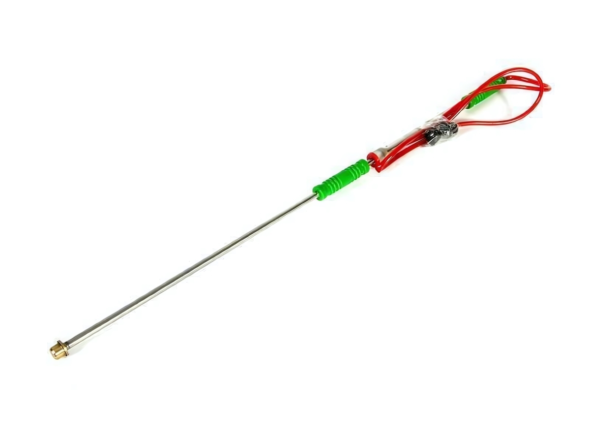 Размеры инструмента: диаметр трубки 4,25 мм, общая длина 380 мм, высота 350 мм. Рукоятка выполнена из пластика с эргономичным покрытием, которое удобно держать даже в мокрых условиях.