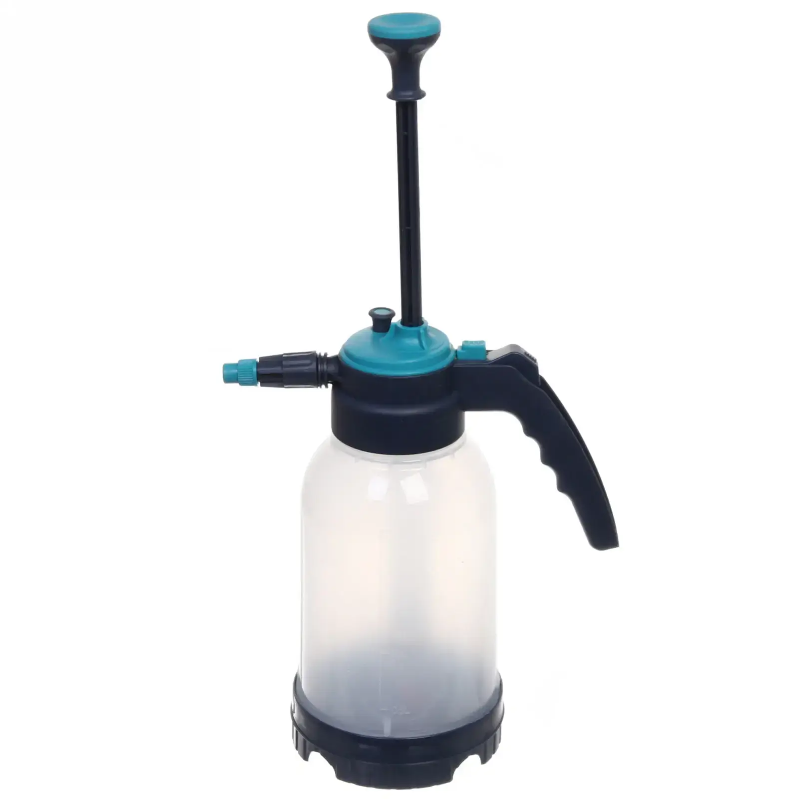 Опрыскиватель имеет объем 2 литра, что позволяет вам обрабатывать достаточно большую площадь без необходимости частой заправки. Прозрачный контейнер с градуировкой позволяет контролировать уровень жидкости, а черные и бирюзовые элементы придают ему стильный вид. Не забывайте использовать средства защиты, такие как резиновые перчатки и защитные очки, при работе с химическими веществами.
